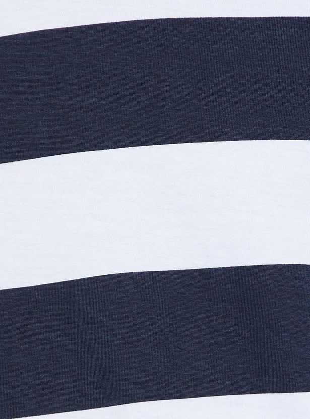 This striped t-shirt with half sleeves and crew neck, gives trendy style to boost your casual look. Style it with a pair of jeans and sneakers for a stylish look.