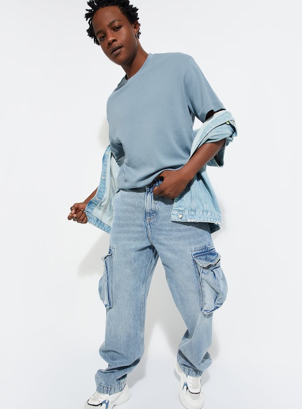 Embrace a laid-back vibe with this T-shirt, crafted in a solid tone with a textured surface. Designed with a relaxed fit for comfort, it features a crew neck and half sleeves, making it perfect for effortless style.