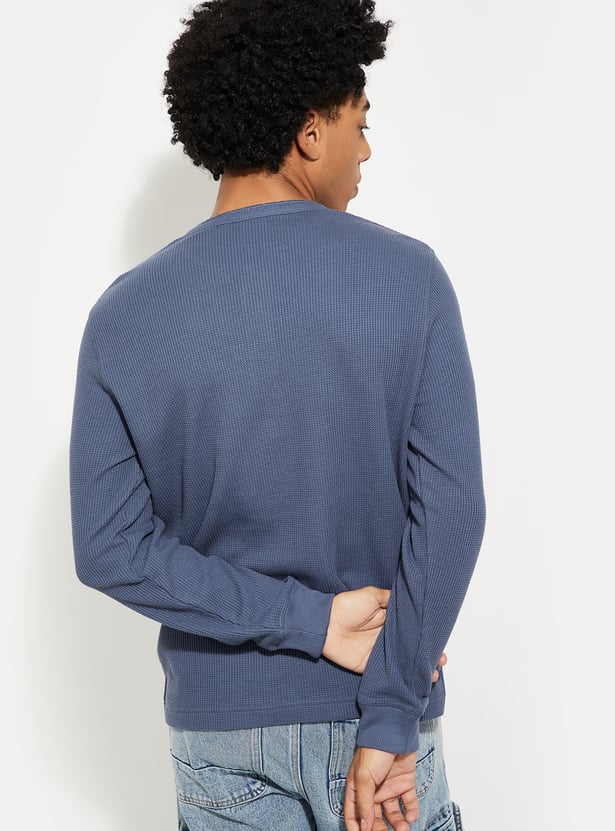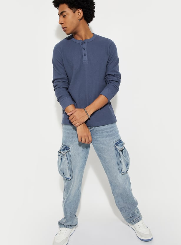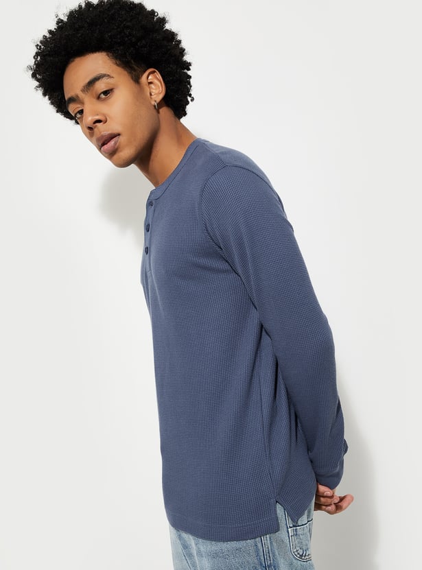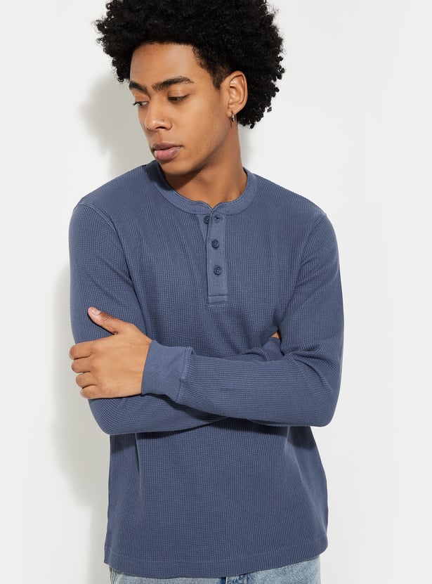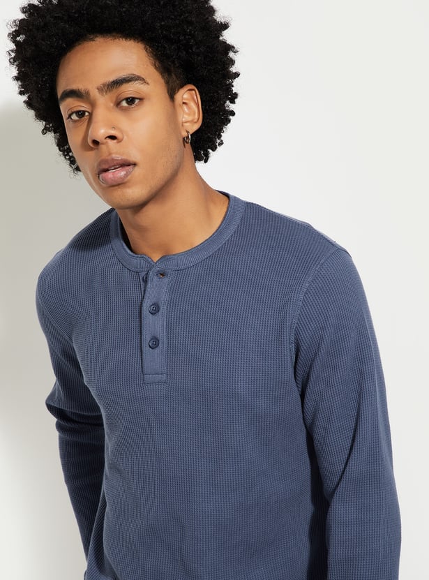 Elevate your casual style with this Men’s Ribbed Henley T-shirt. Featuring full sleeves and a buttoned Henley neck, it combines comfort and a timeless design for a relaxed yet stylish look.