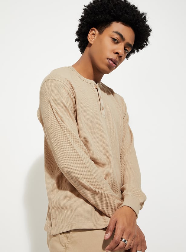 URB_N Men Ribbed Henley T-shirt