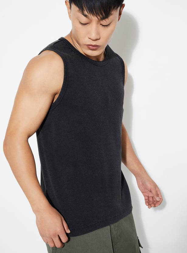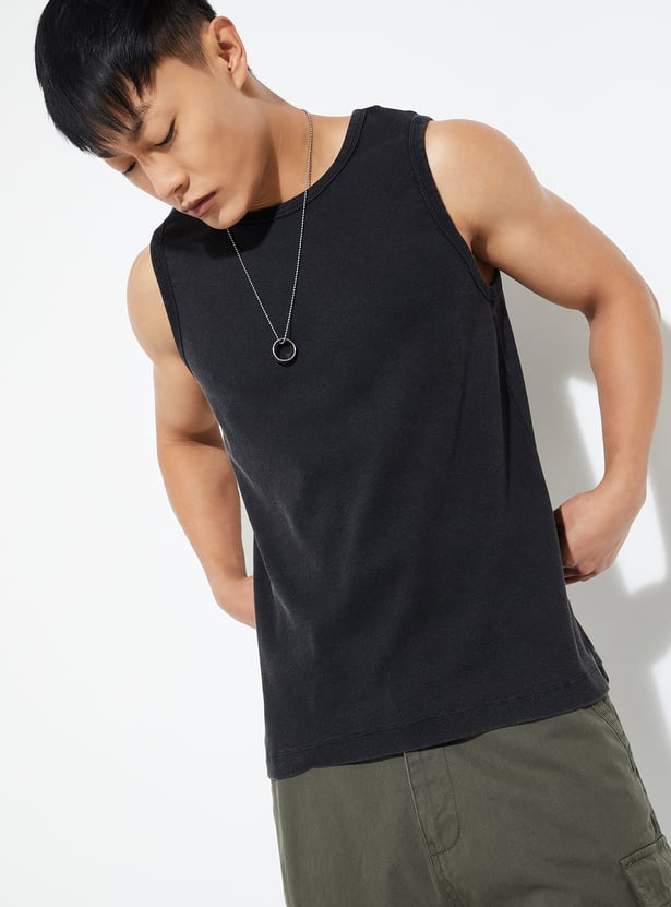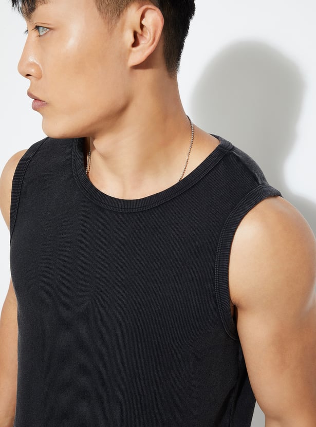 This ribbed T-shirt is the perfect blend of comfort and style. Featuring a crew neck, sleeveless, and a straight hem, it offers a relaxed fit for everyday wear.