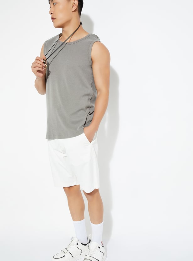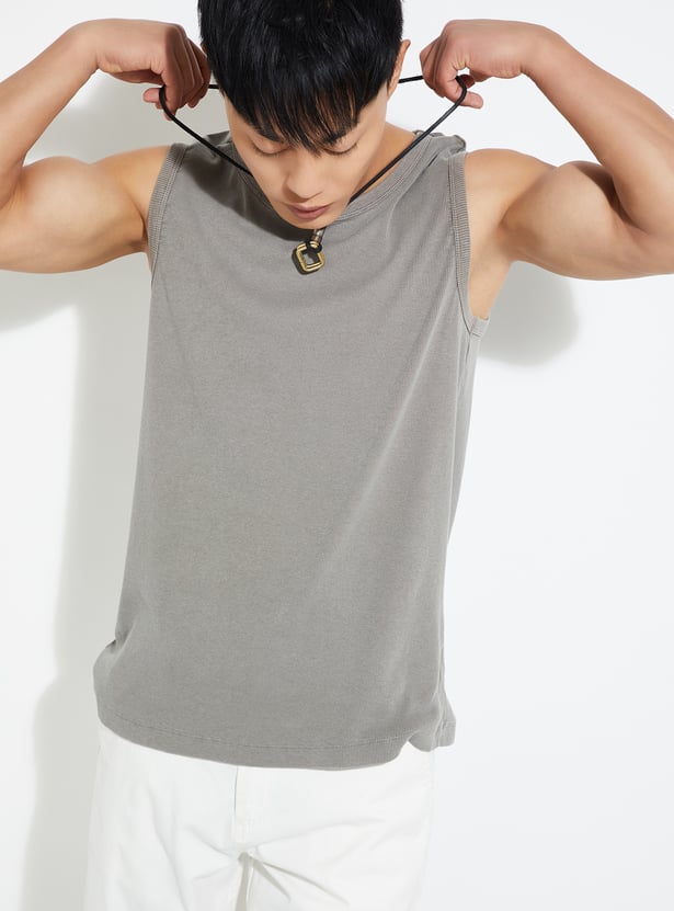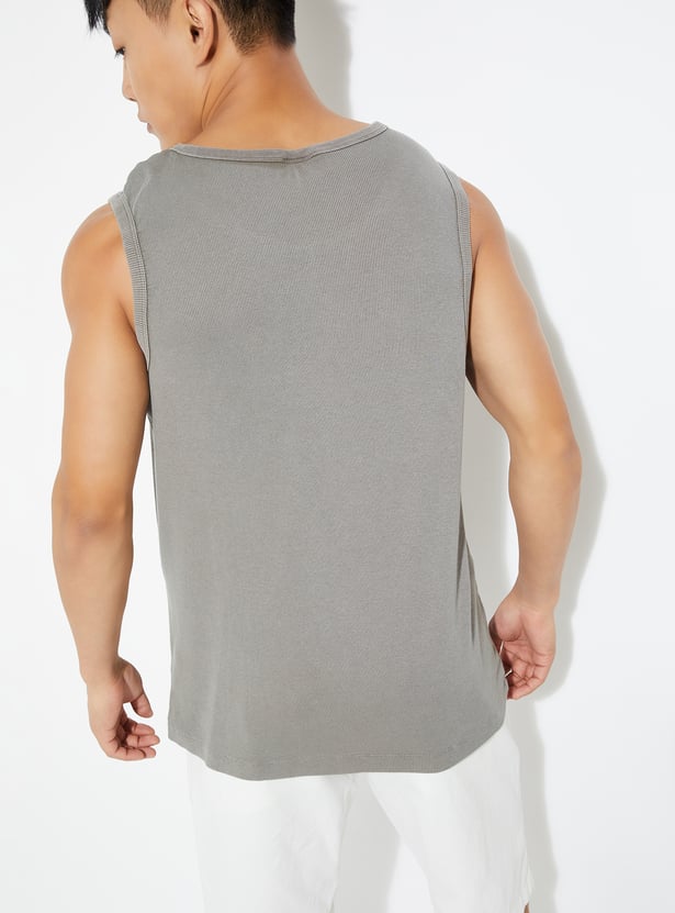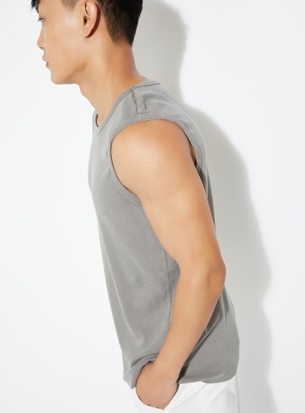 This ribbed T-shirt is the perfect blend of comfort and style. Featuring a crew neck, sleeveless, and a straight hem, it offers a relaxed fit for everyday wear.