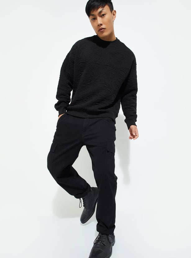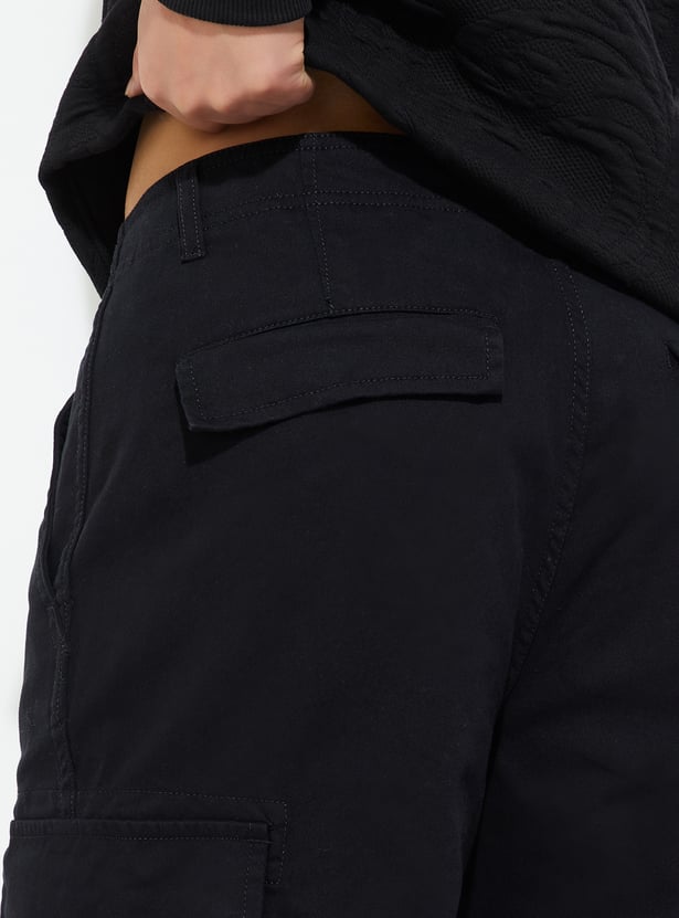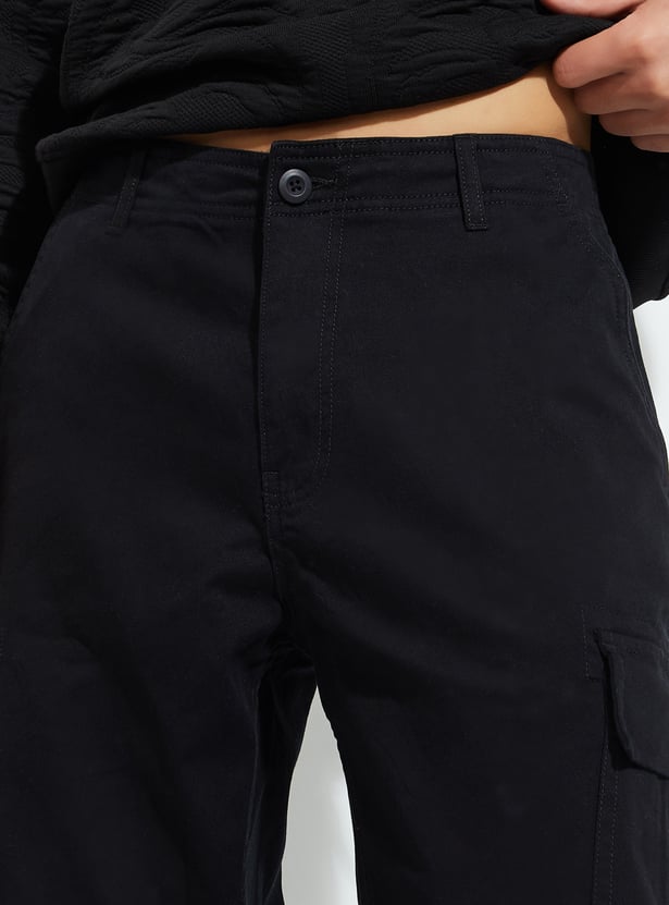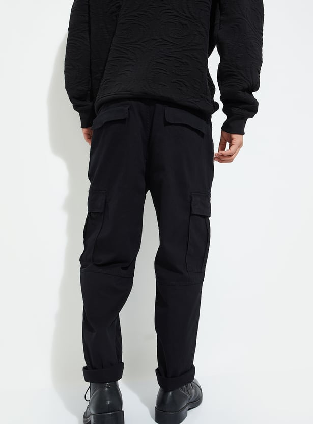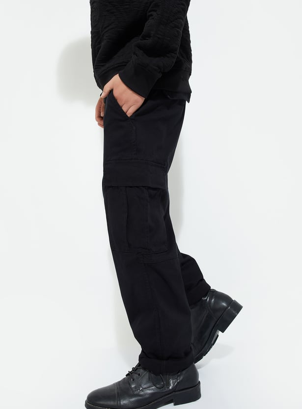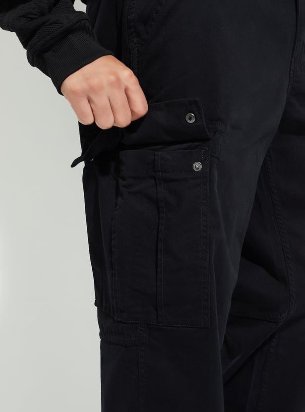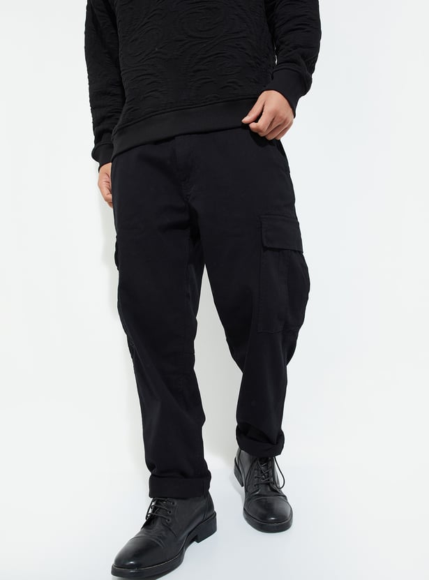 Gear up for adventure in this pair of trousers. Rendered in a solid tone, it has a belt loop waist, 4 pockets plus cargo pockets for functionality, and a full-length profile.