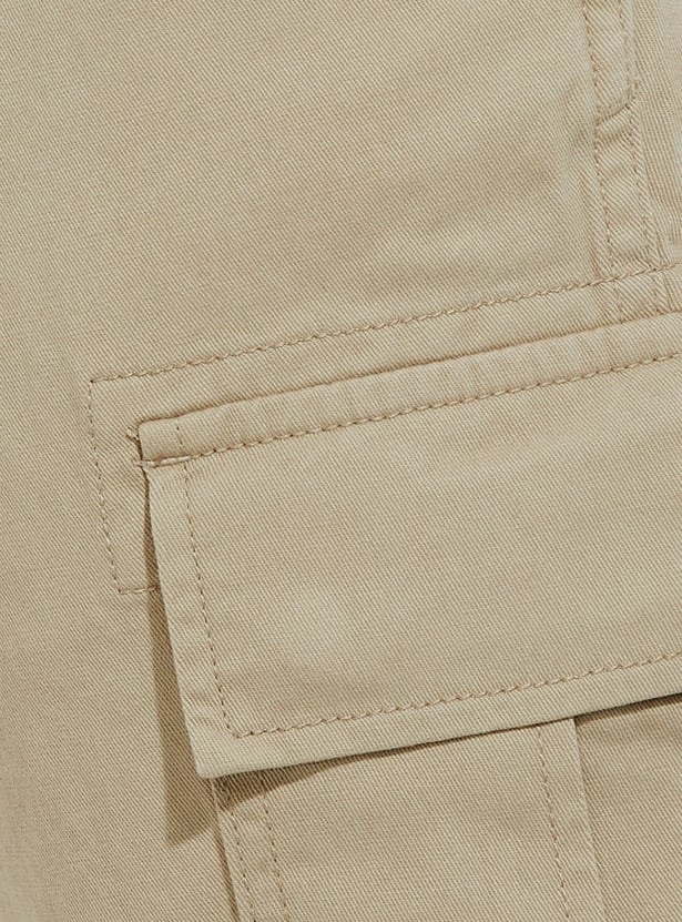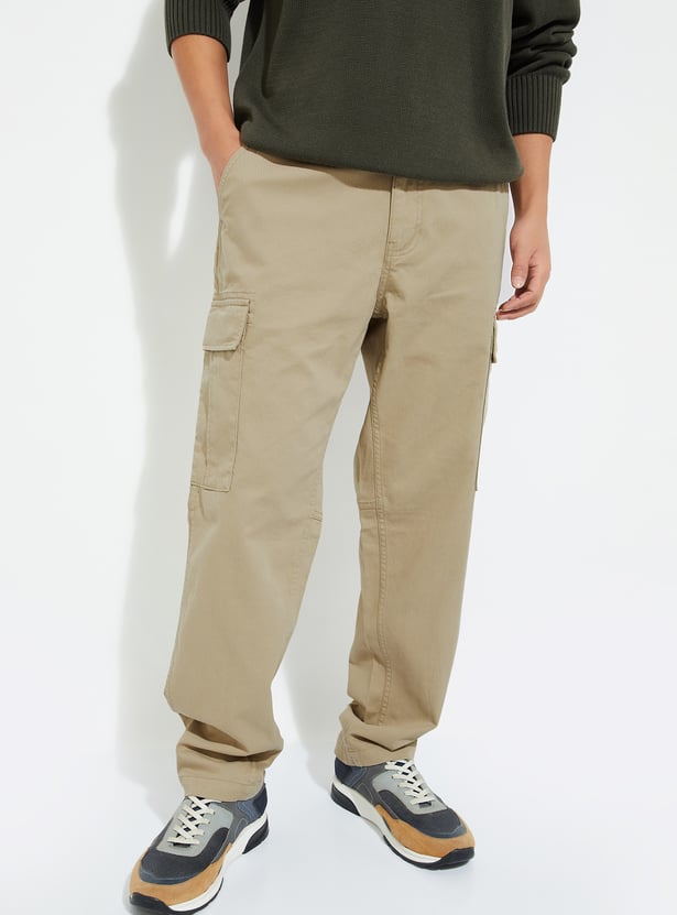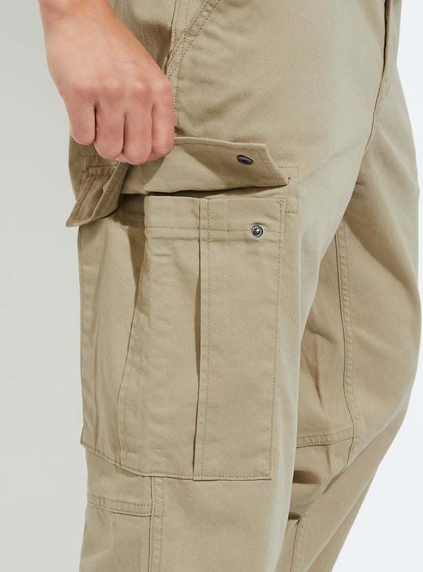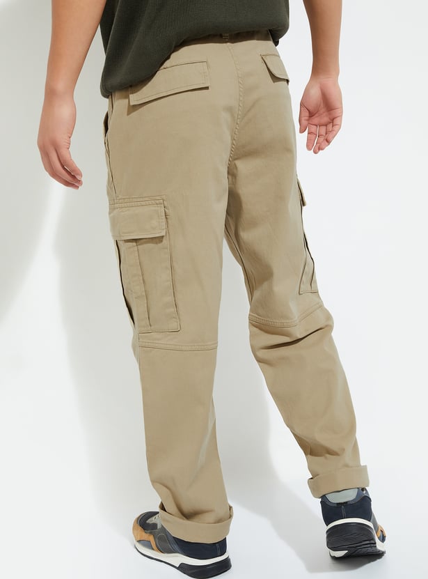 Gear up for adventure in this pair of trousers. Rendered in a solid tone, it has a belt loop waist, 4 pockets plus cargo pockets for functionality, and a full-length profile.
