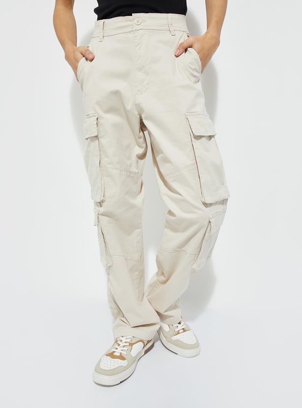 URB_N Men Solid Loose Fit Cargo Trousers