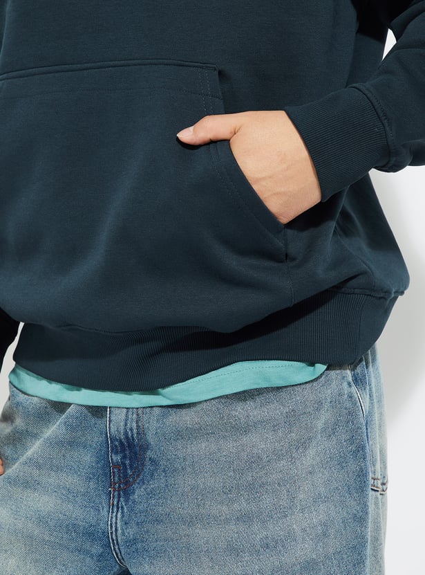 This solid, oversized sweatshirt is a casual essential, designed with long sleeves, a relaxed fit, and a straight hem for effortless comfort. Its minimal, hooded design and soft fabric make it perfect for everyday layering.