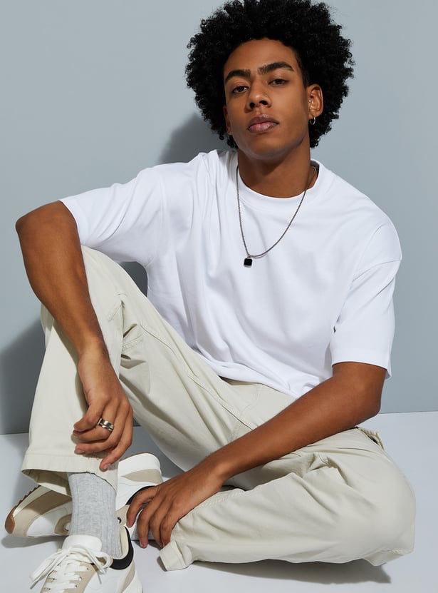 Get ready for your next adventure with this solid-finish T-shirt. Designed with a classic crew neck, half sleeves, and a oversized fit, it’s the perfect choice for easygoing, street-inspired style.