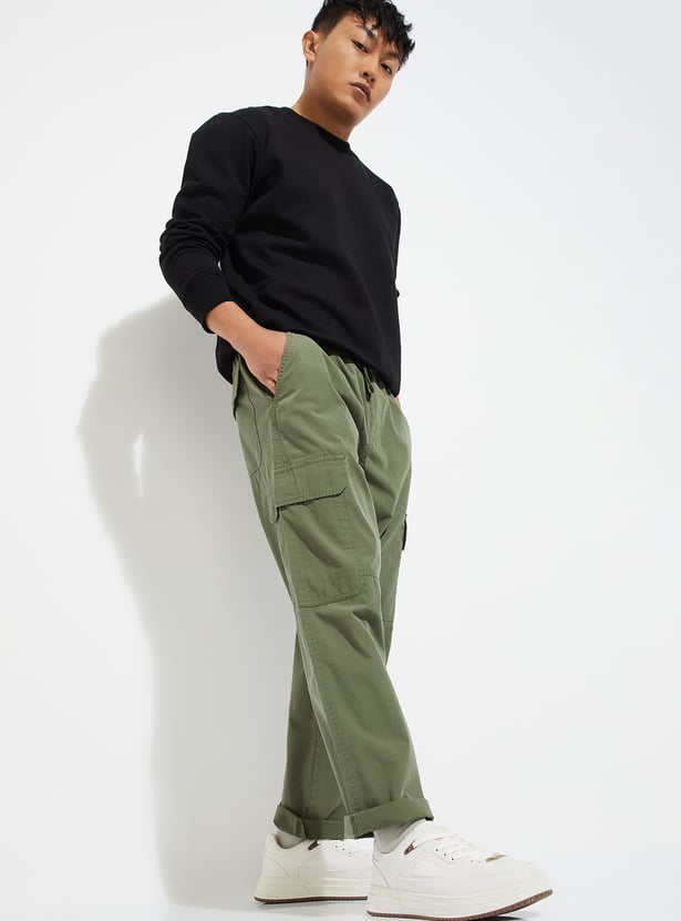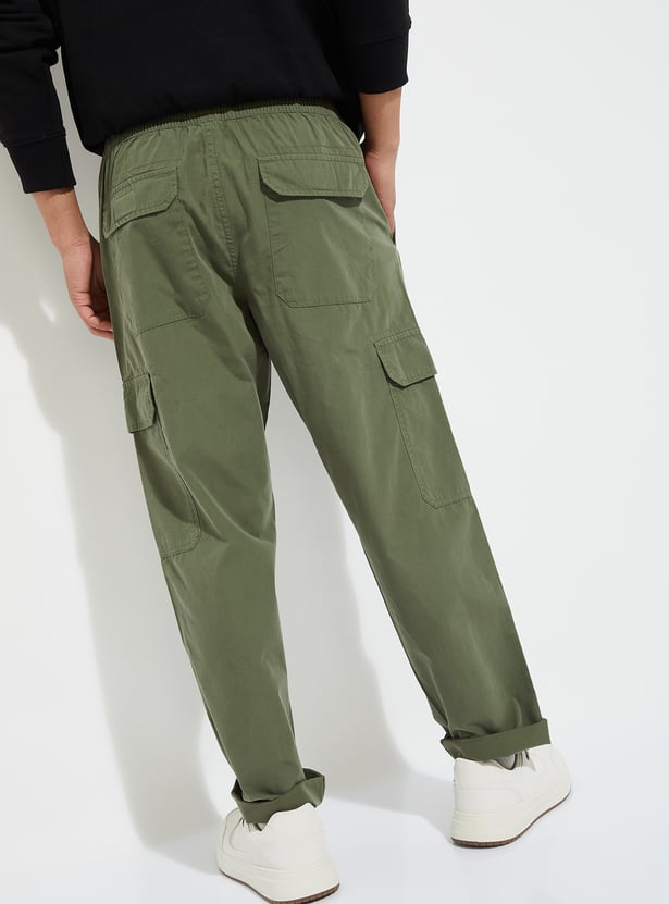 These solid cargos feature a mid-rise, classic cargo pockets, and a drawstring closure, blending utility with everyday comfort. Made from durable fabric, they’re designed for versatility, offering both style and practicality for casual wear.
