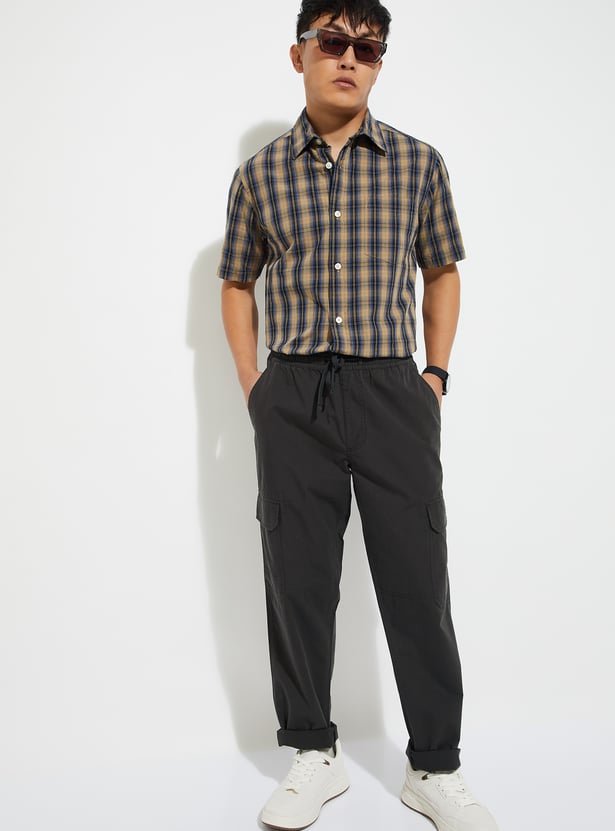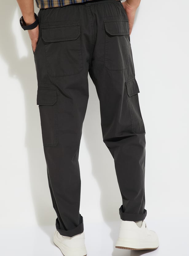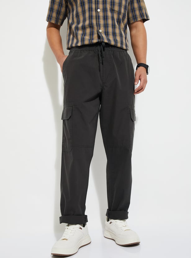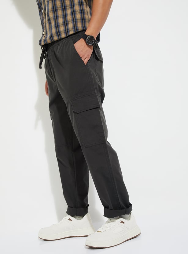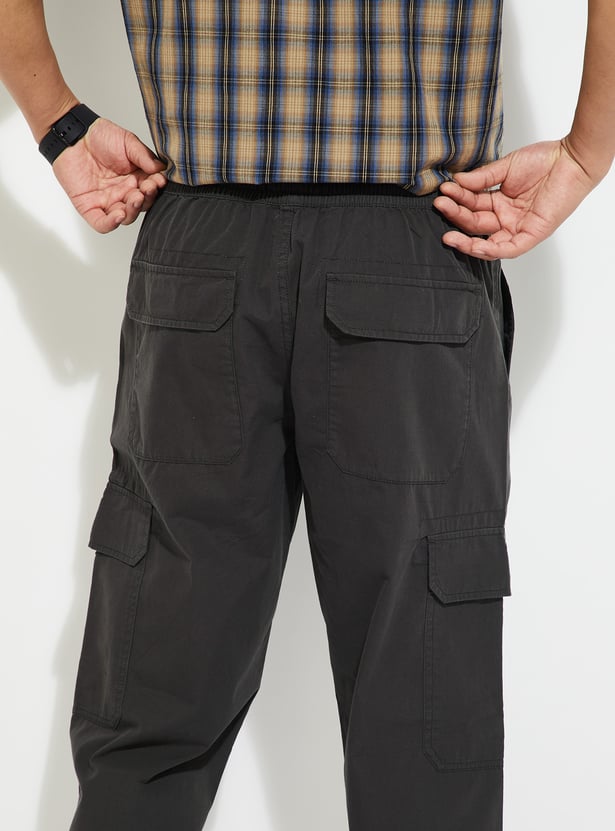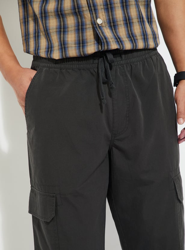 These solid cargos feature a mid-rise, classic cargo pockets, and a drawstring closure, blending utility with everyday comfort. Made from durable fabric, they’re designed for versatility, offering both style and practicality for casual wear.