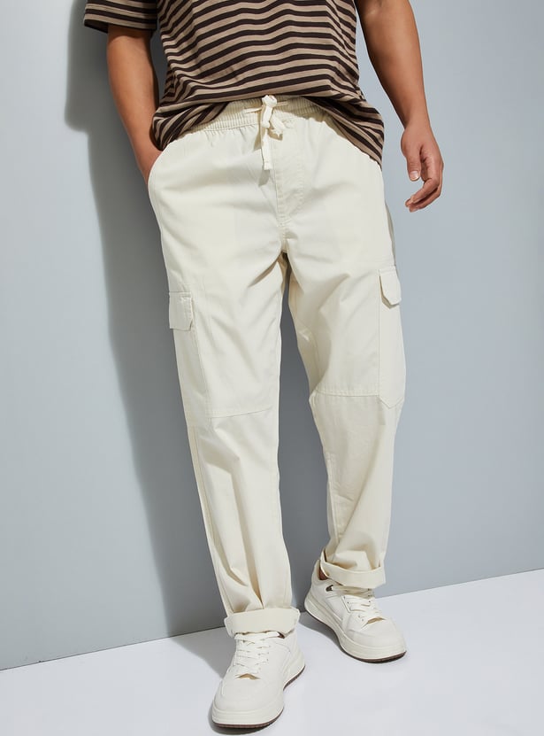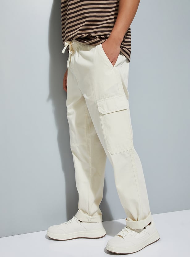 URB_N Men Solid Regular Fit Cargos