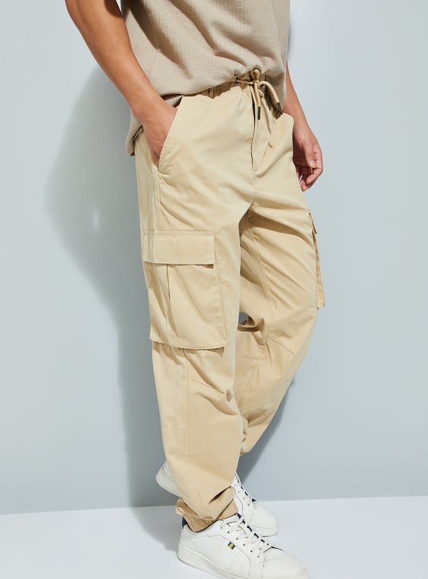 URB_N Men Solid Relaxed Fit Cargo Joggers