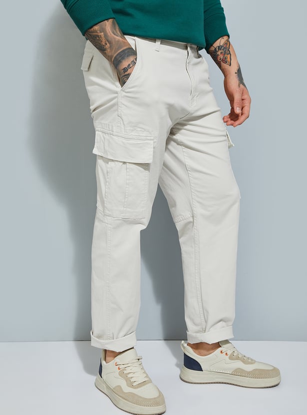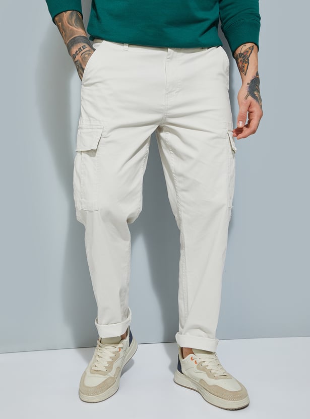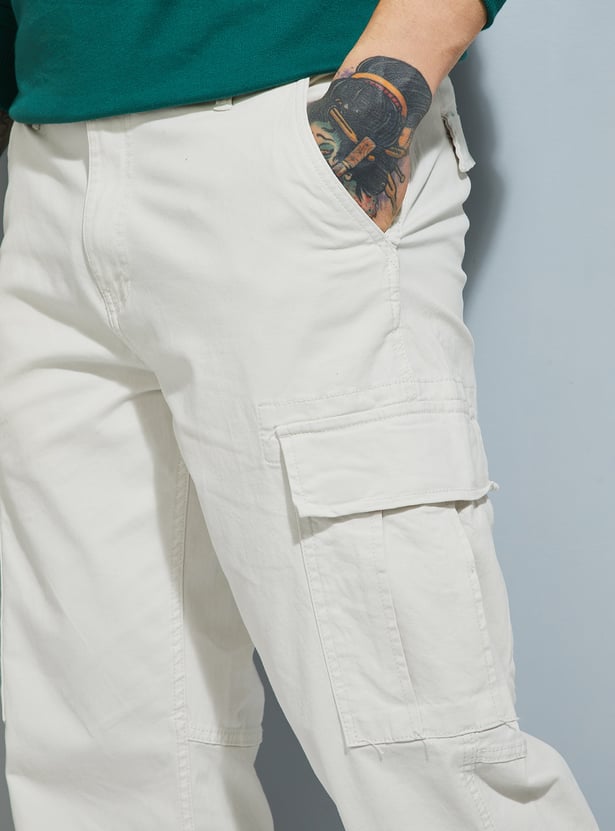 URB_N Men Solid Relaxed Fit Cargo Trousers