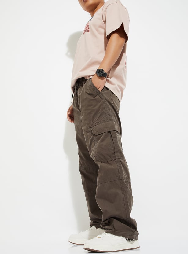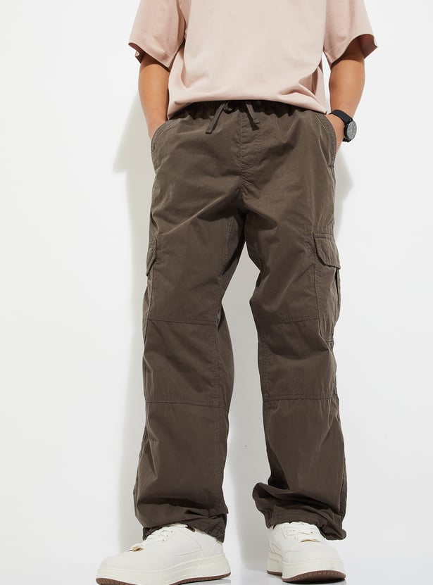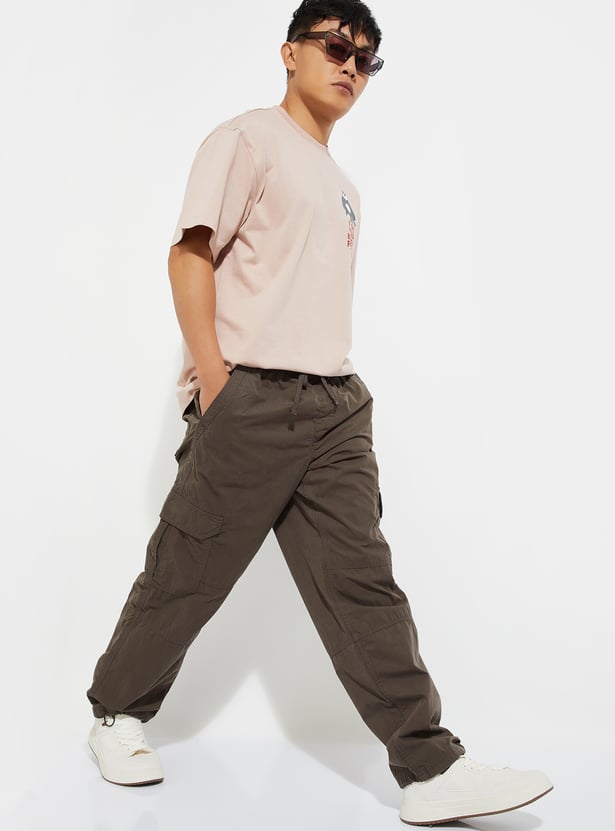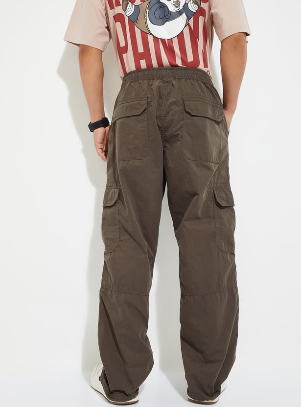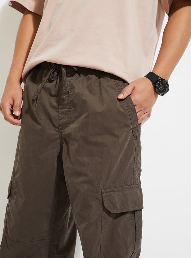 URB_N Men Solid Relaxed Fit Parachute Cargos