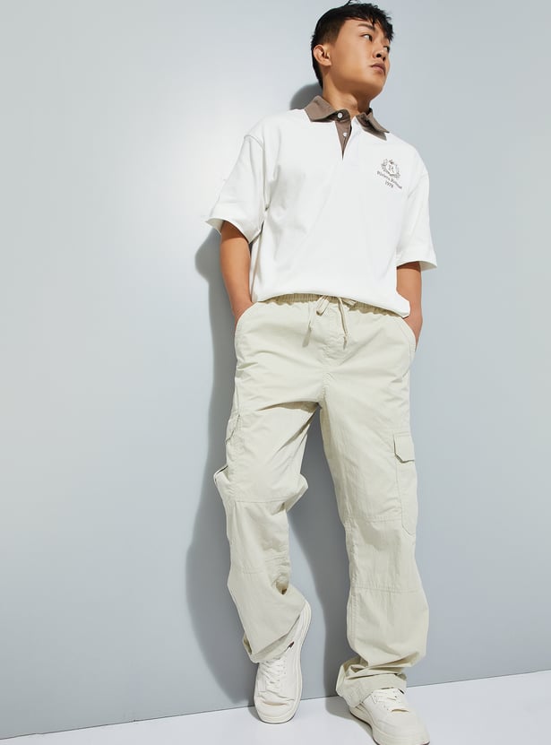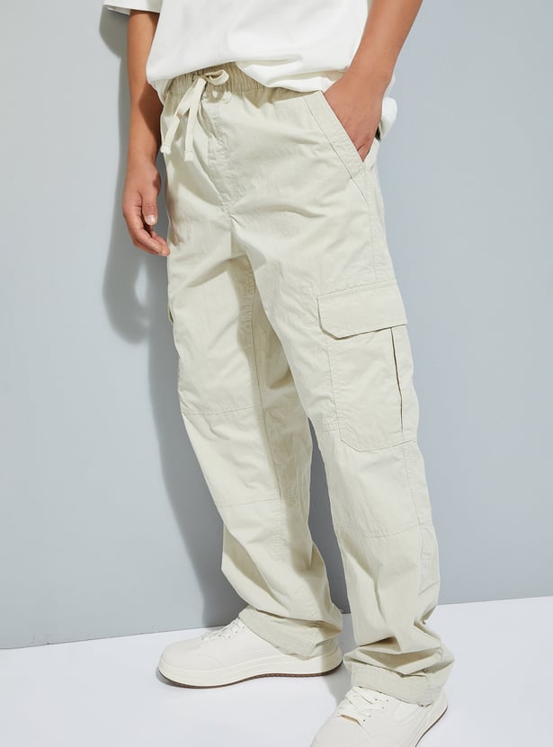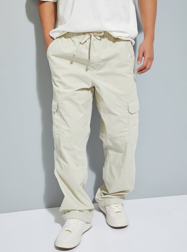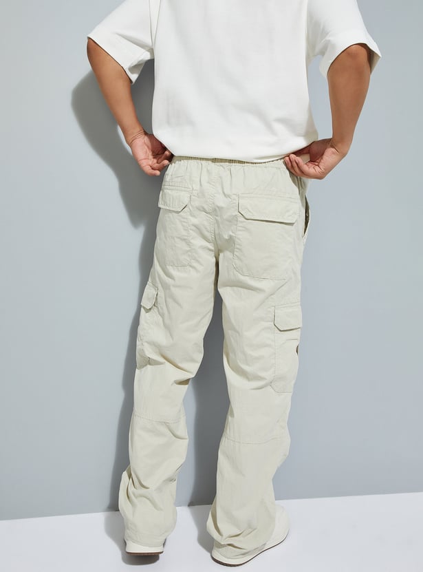 URB_N Men Solid Relaxed Fit Parachute Cargos