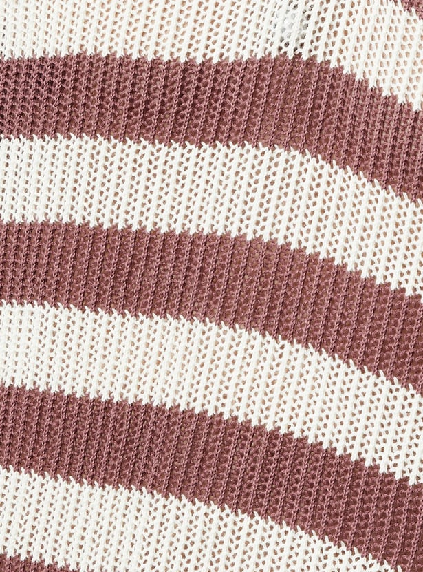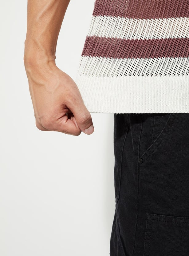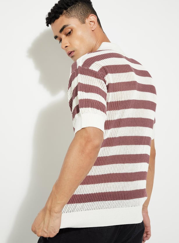 URB_N Men Striped Knit Oversized Polo T-shirt