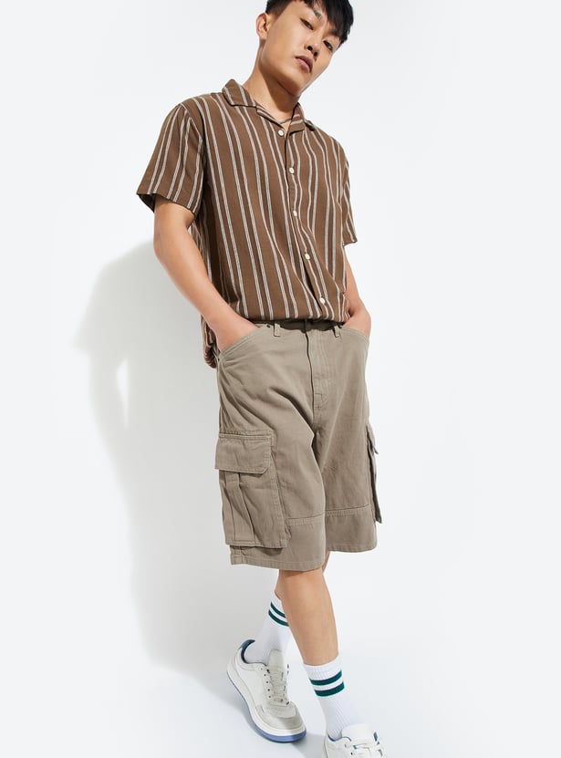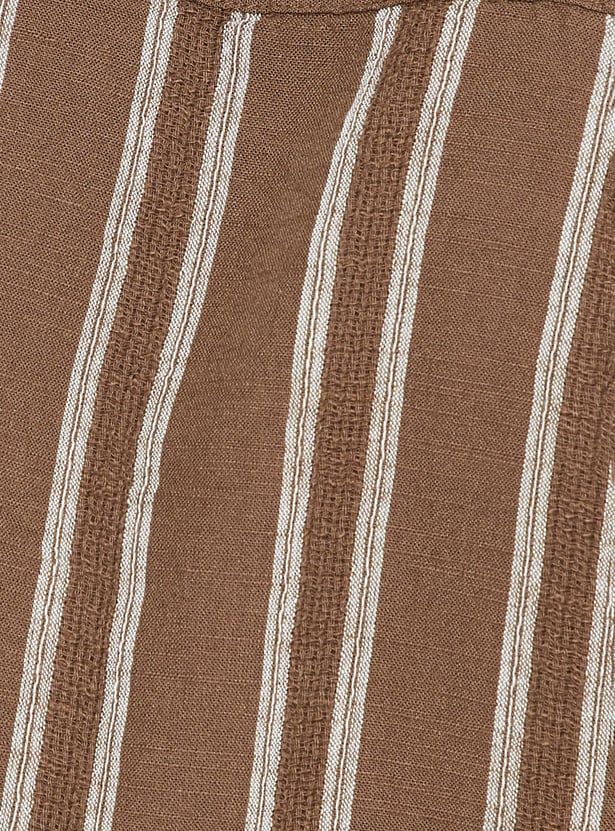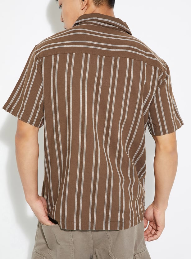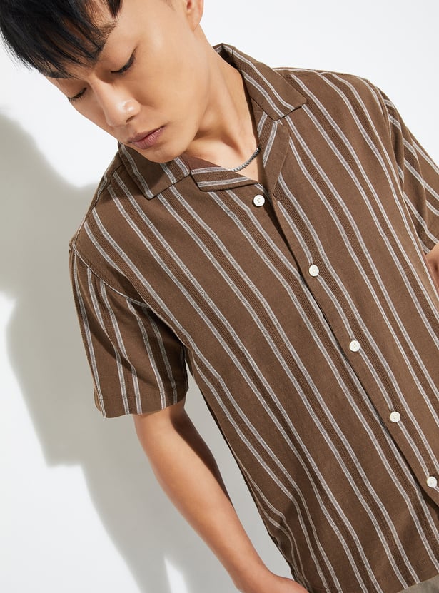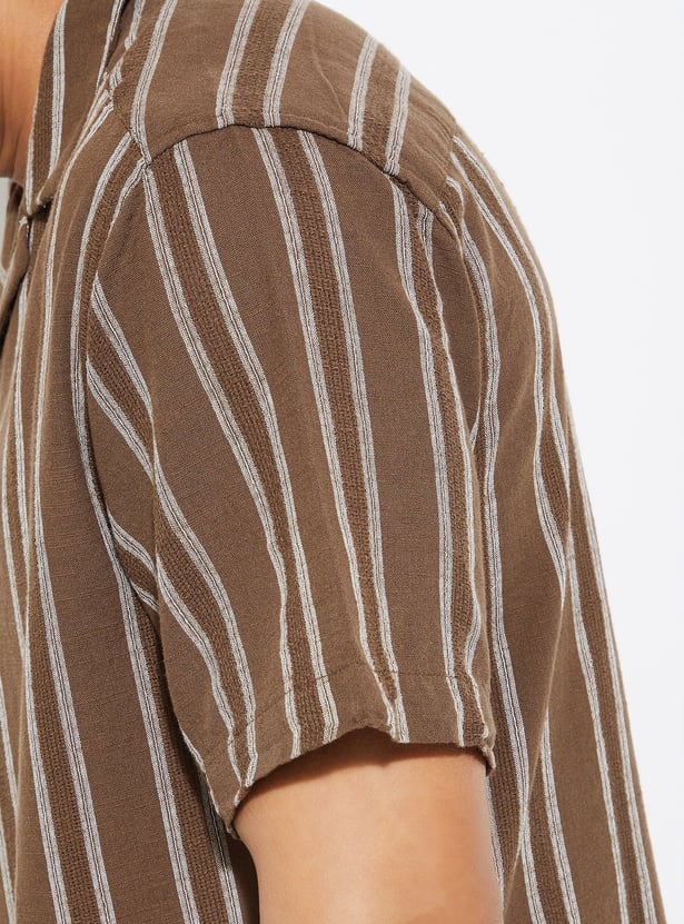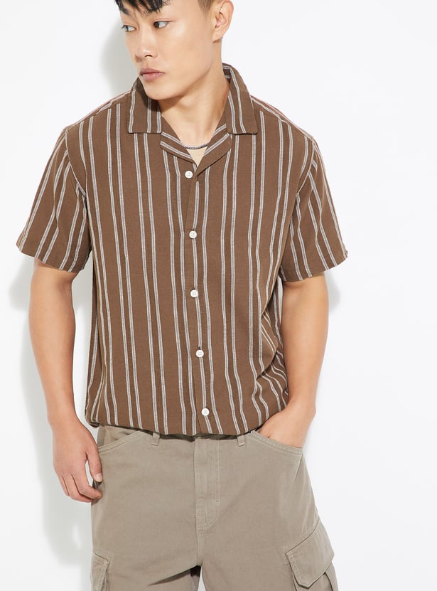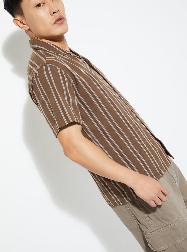 Add a fresh touch to your wardrobe with this striped regular fit shirt. Featuring a resort collar, button placket, and half sleeves, it offers a laid-back yet stylish vibe for everyday wear.