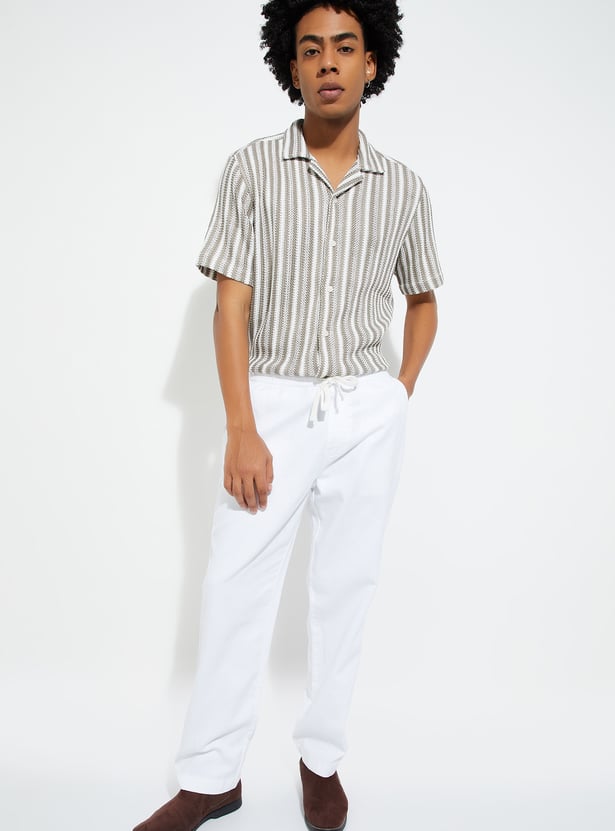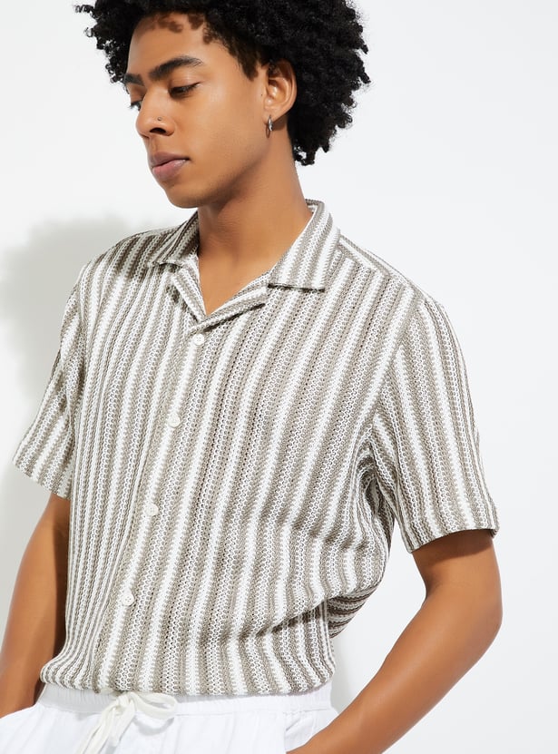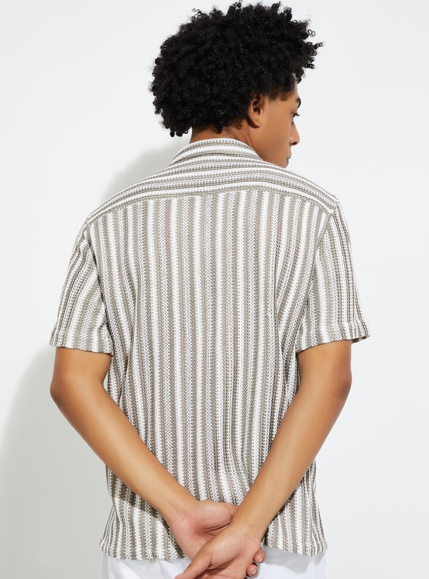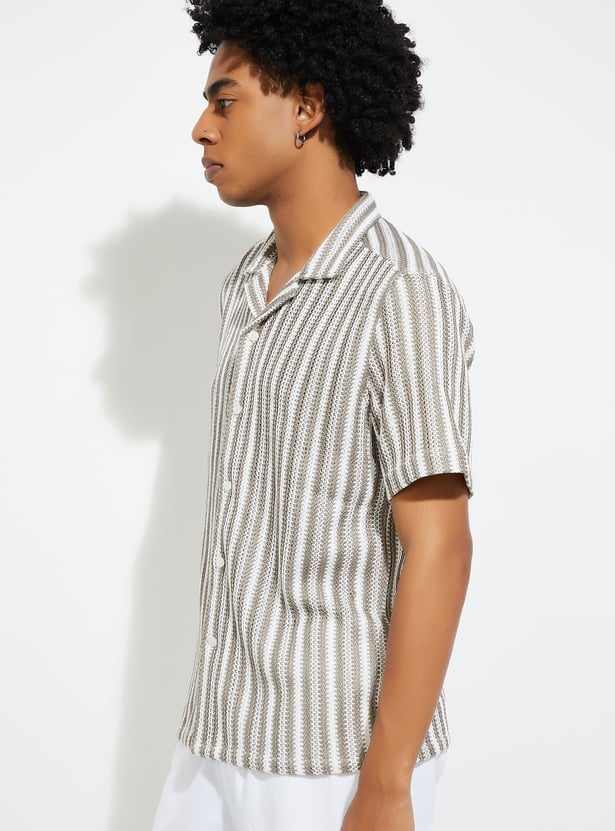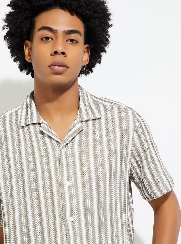 Add a touch of laid-back style to your wardrobe with this striped relaxed fit shirt. Featuring a resort collar, button placket, and half sleeves, it’s perfect for casual outings or vacations.