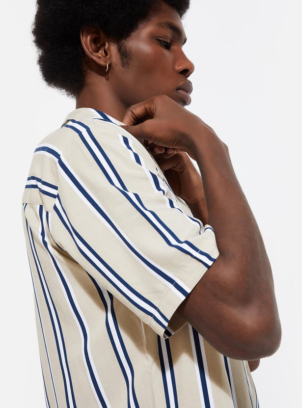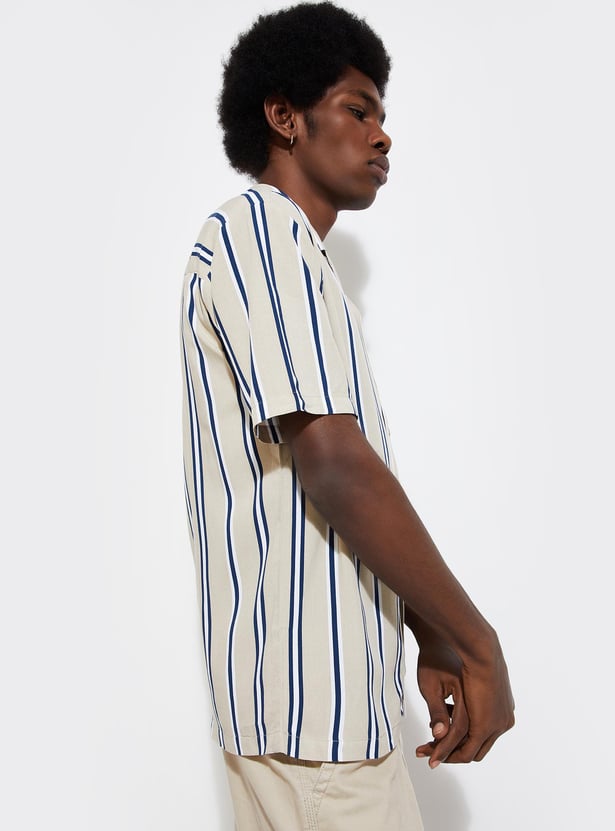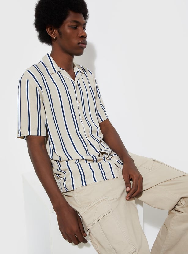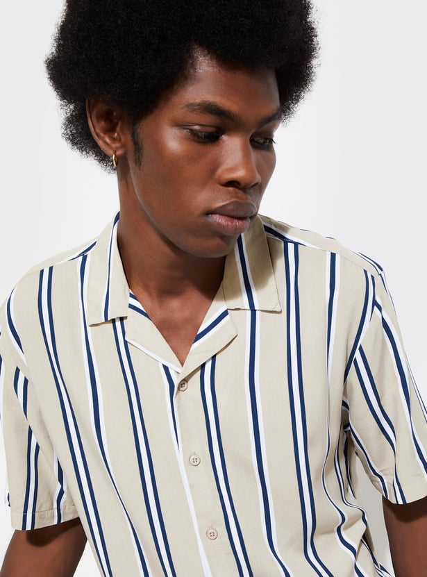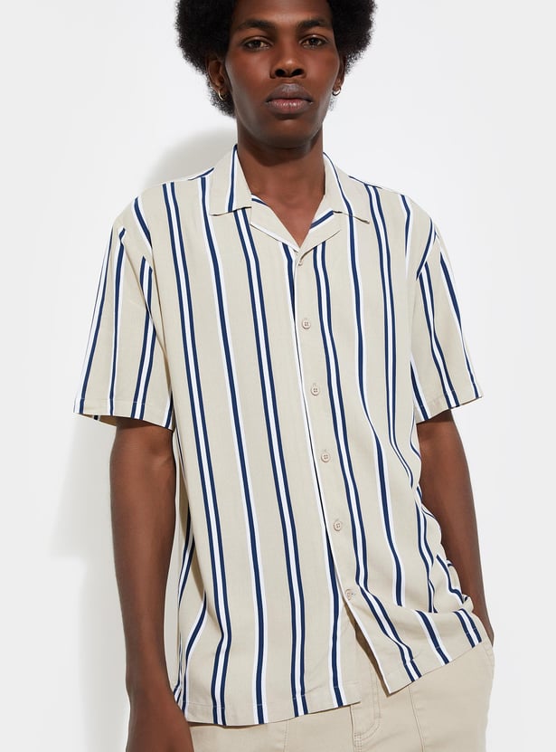 URB_N Men Striped Resort Collar Shirt