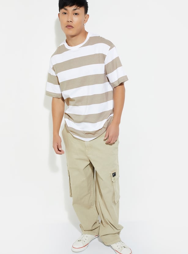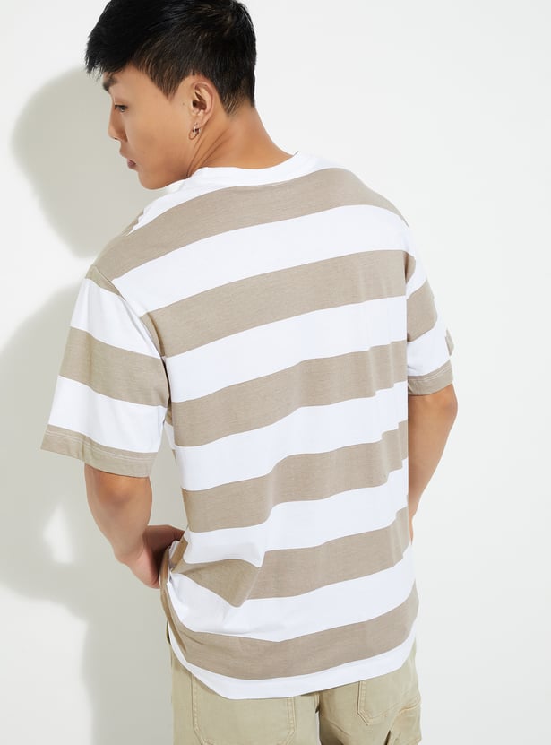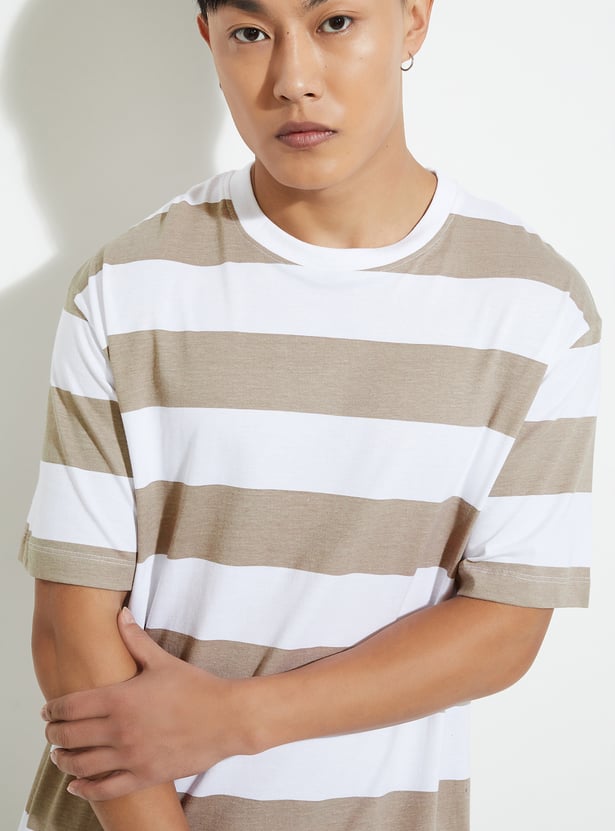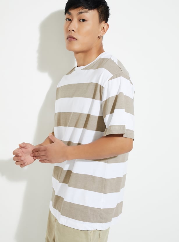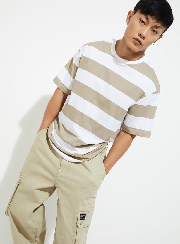 Level up your street style game with this striped T-shirt, designed for effortless cool. Featuring a classic crew neck and half sleeves, this versatile staple adds a fresh, urban edge to your wardrobe, making it perfect for laid-back days or city strolls.