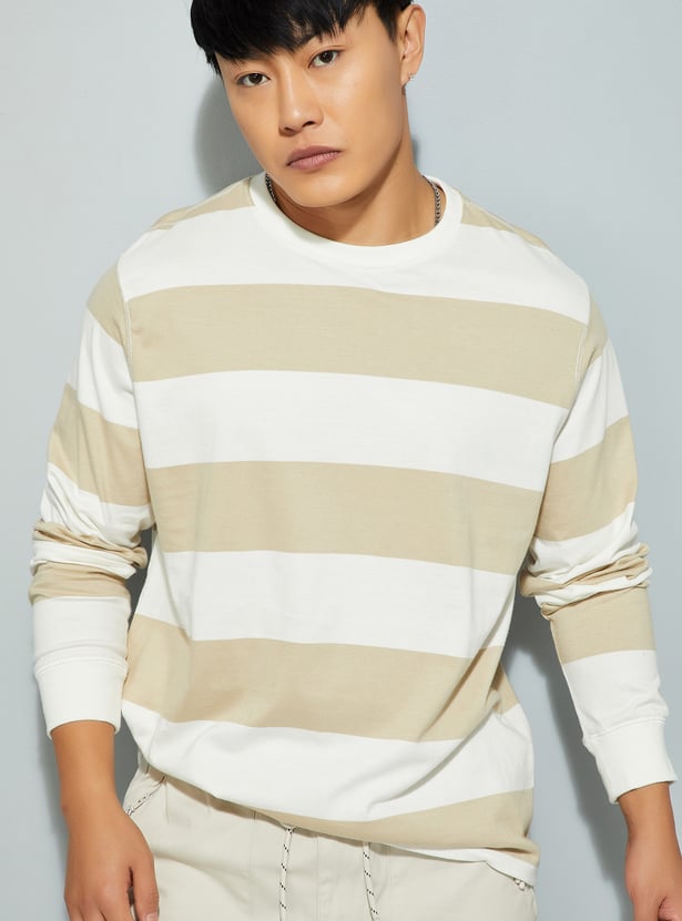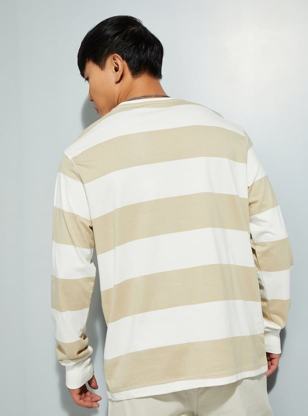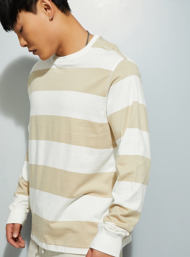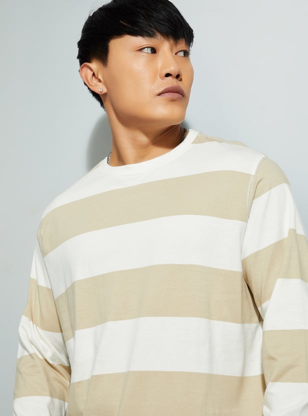 Refresh your casual collection with this striped t-shirt, designed with a crew neck and full sleeves for a comfortable fit. The timeless striped pattern adds a touch of effortless style, making it a versatile choice for any season.