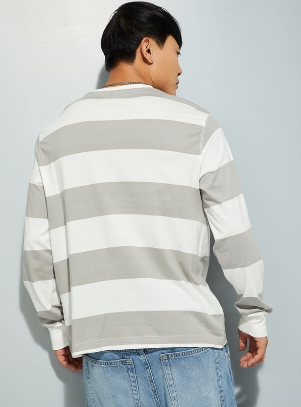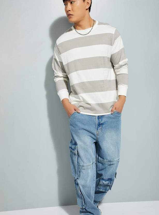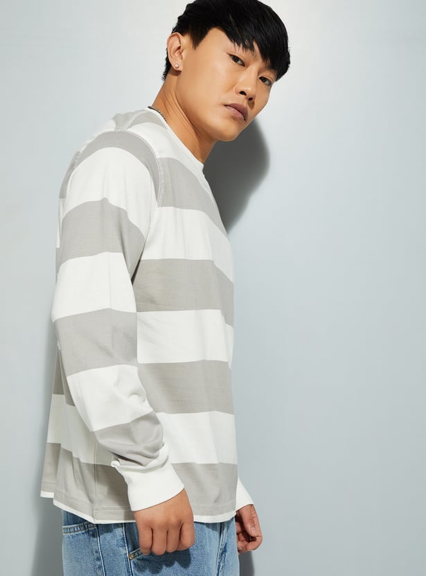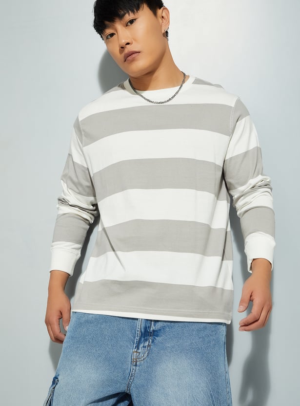 Refresh your casual collection with this striped t-shirt, designed with a crew neck and full sleeves for a comfortable fit. The timeless striped pattern adds a touch of effortless style, making it a versatile choice for any season.