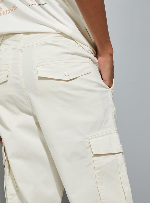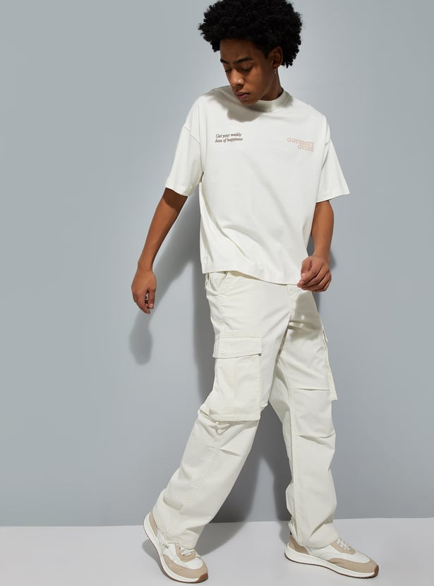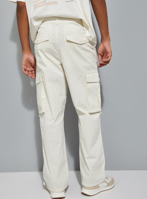 These textured cargo parachute trousers feature a button closure and a drawcord at the hem for a customizable fit. With a relaxed, oversized silhouette, they offer both comfort and style with multiple pockets for added functionality.