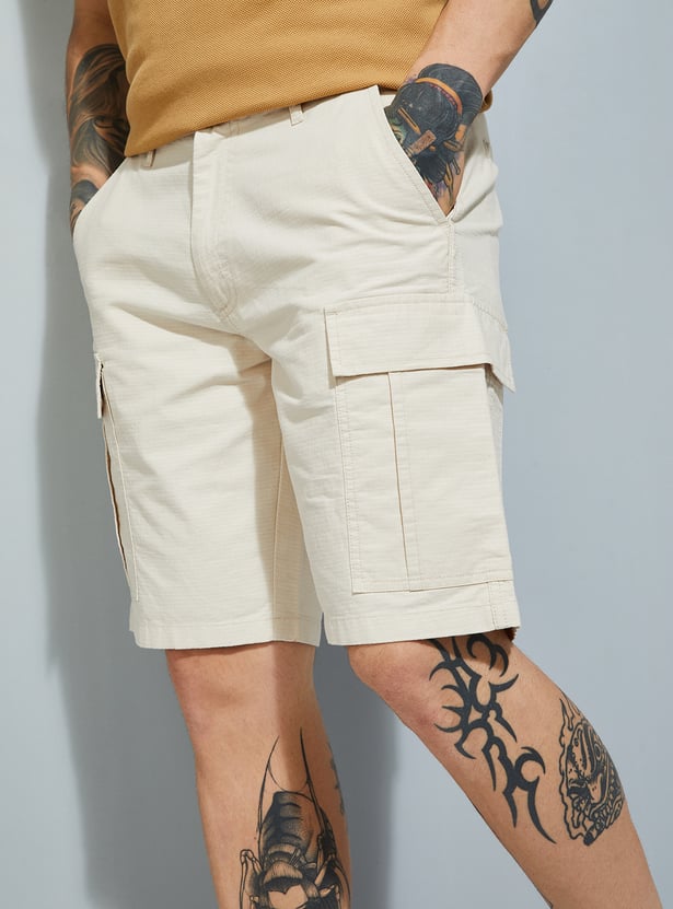 Add utility and style to your casual wear with these textured cargo shorts. Featuring a button closure, belt loops, and six roomy pockets, they’re made for both function and comfort.
