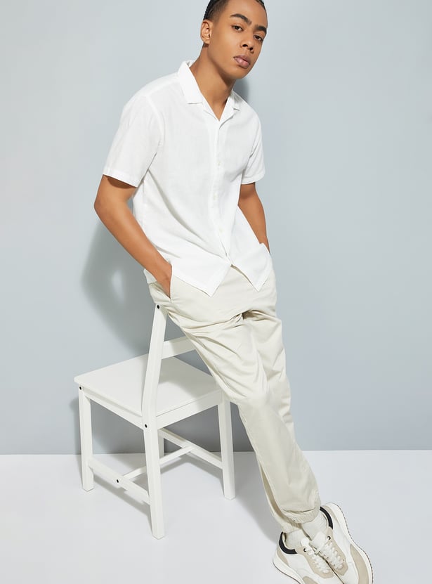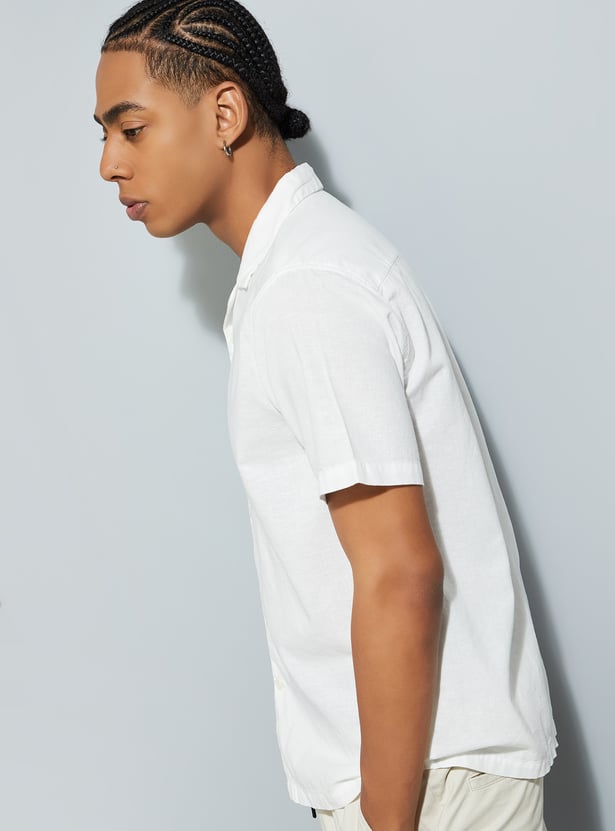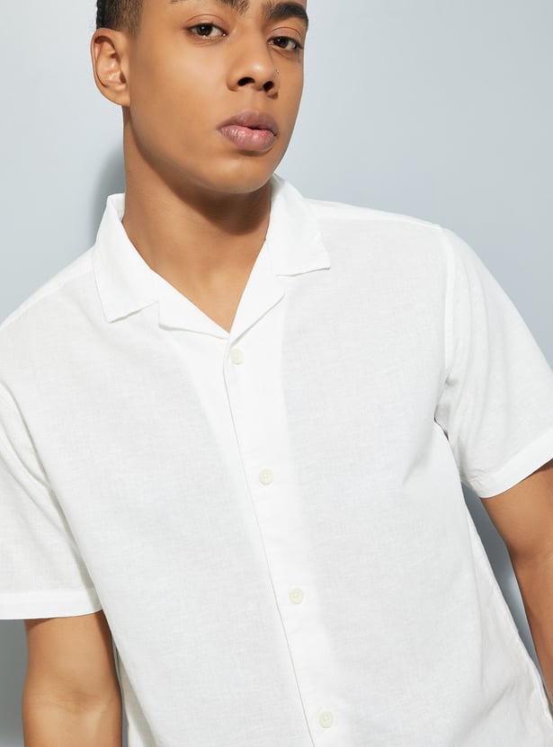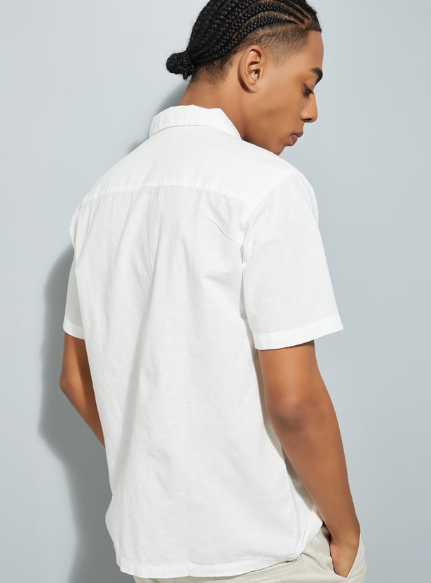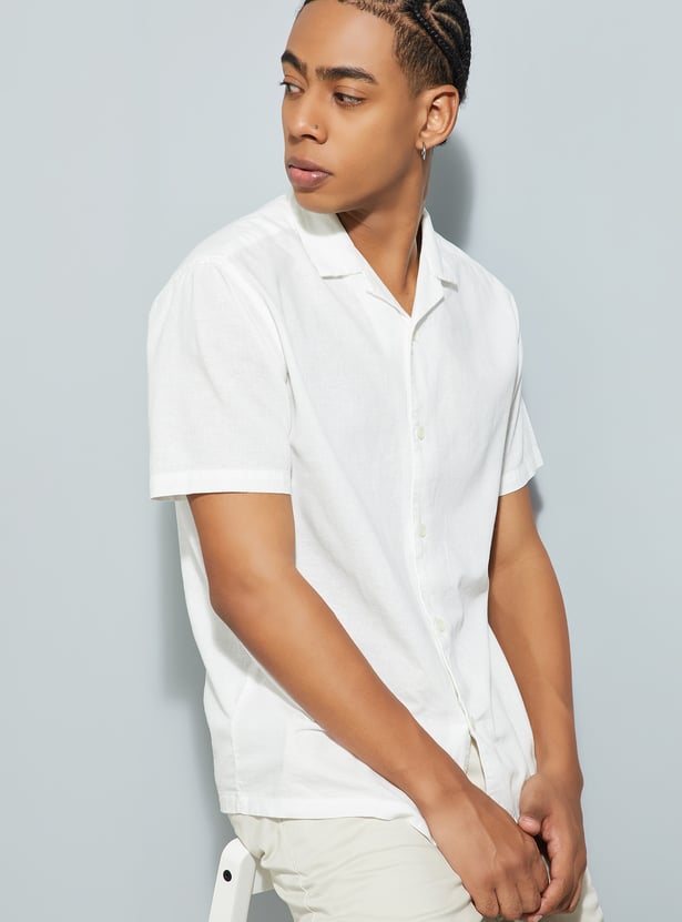 URB_N Men Textured Regular Fit Resort Linen Shirt