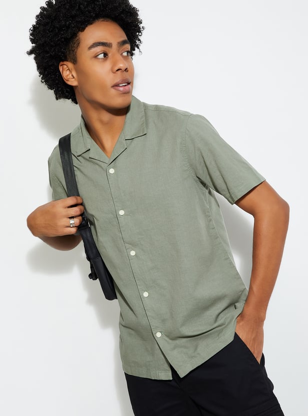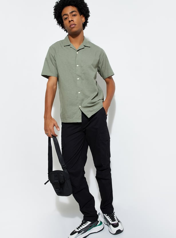 URB_N Men Textured Regular Fit Resort Linen Shirt