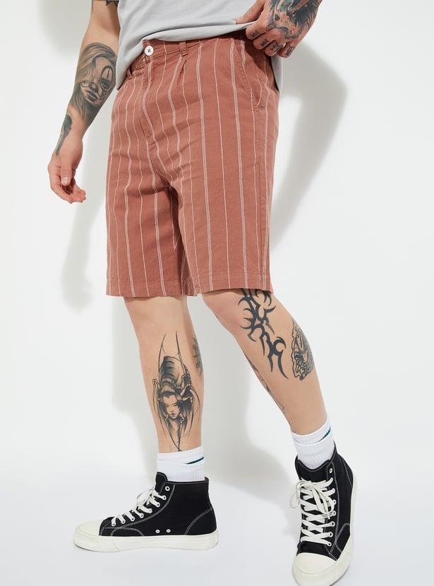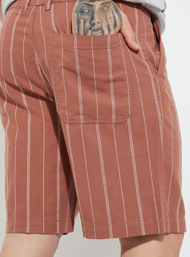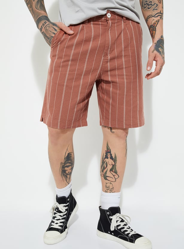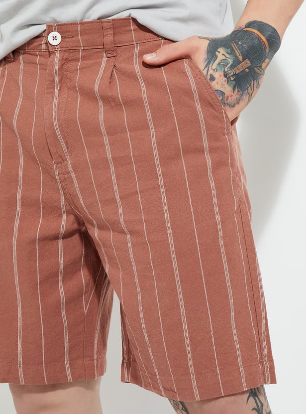 Stay stylish and comfy in these textured shorts, featuring a secure button closure and practical pockets—perfect for everyday wear with a touch of detail.