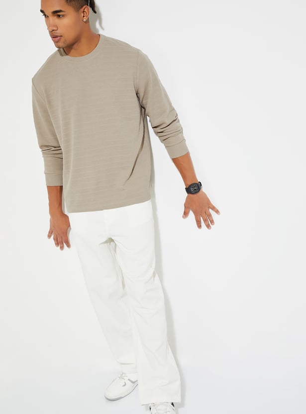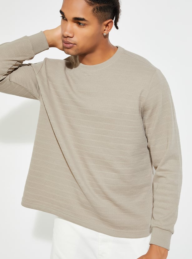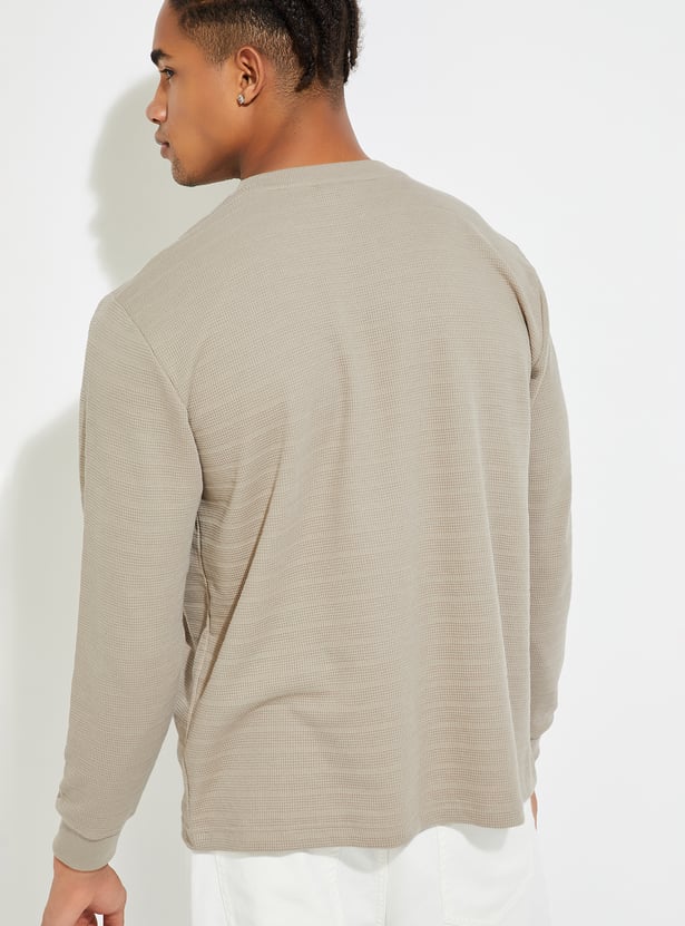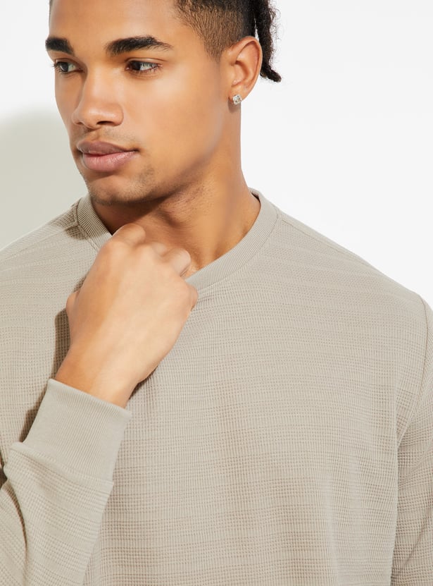 Level up your street style with this textured T-shirt, featuring full sleeves and a classic crew neck. The clean design makes it a versatile staple, perfect for layering or standing out on its own for an urban look.