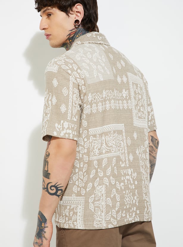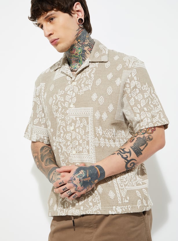 Easygoing and lightweight, this woven resort shirt is your go-to for laid-back days. Featuring a relaxed resort collar, half sleeves, and a button-down front, it blends comfort with effortless vacation-ready style.