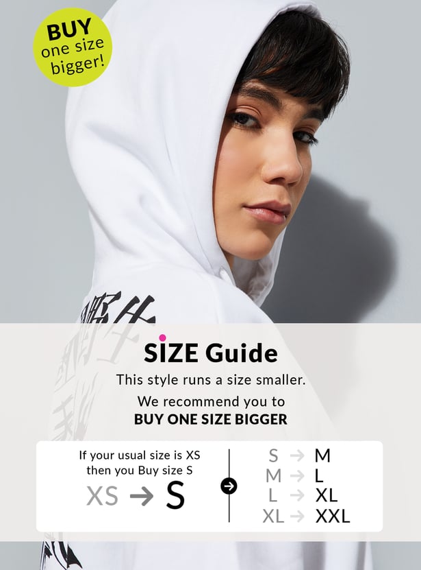 Gear up for winter in style with this urban sweatshirt featuring a bold graphic print at the back and a placement print at the front, full sleeves, a hooded neckline, and a ribbed hem. Stay cosy while making a statement on the city streets.