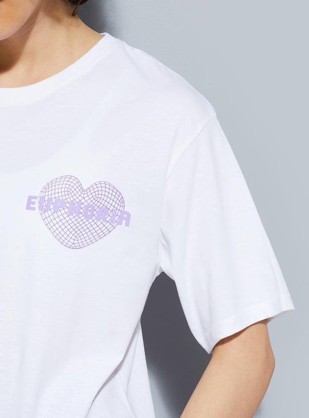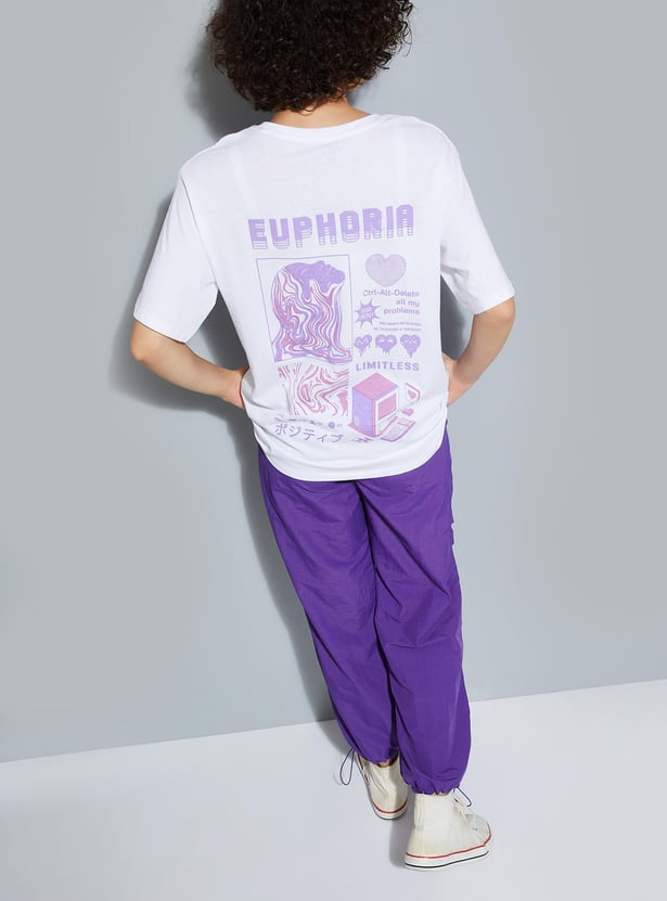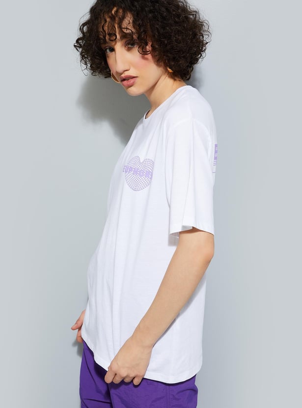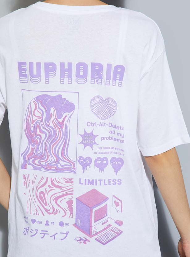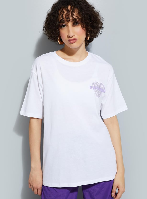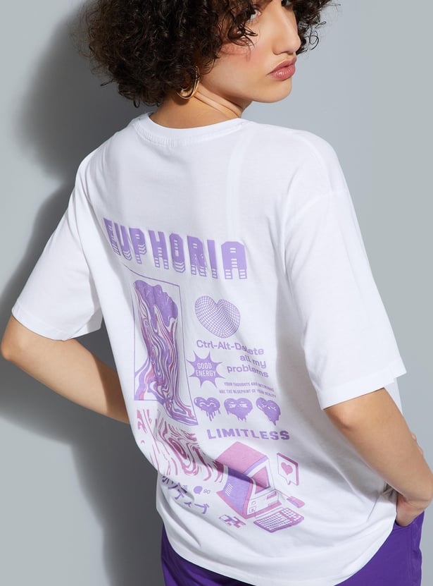 Up your street style with this T-shirt with a graphic print on the back. It has a round neck and short sleeves.