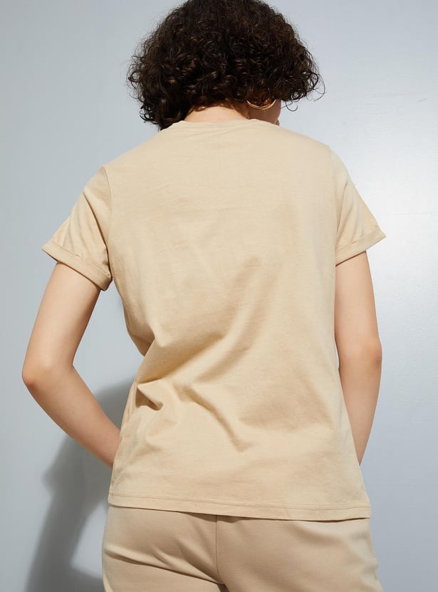 Add some style to your everyday wardrobe with this trendy t-shirt. Featuring a Disney print, it has a round neck and half sleeves.