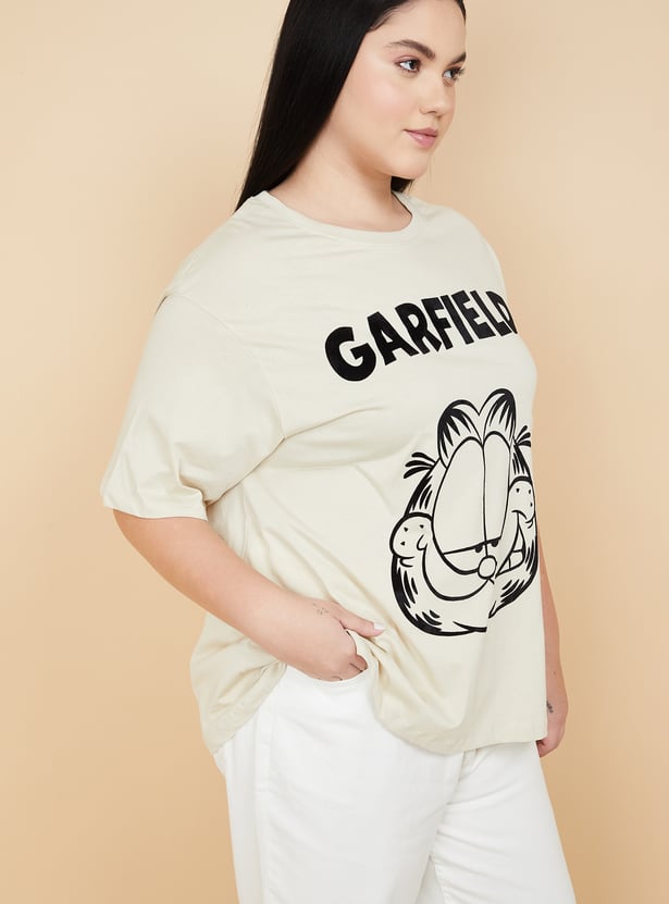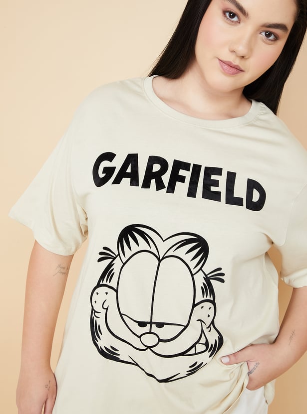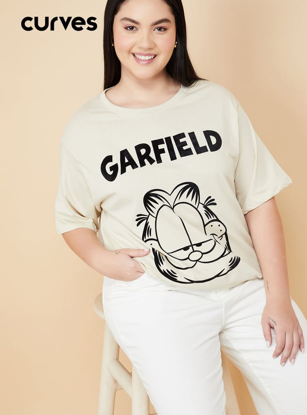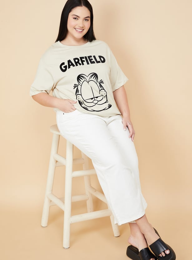 Bring playful energy to your wardrobe with this Garfield boxy fit T-shirt, featuring a round neck and half sleeves. Designed for comfort and character, it's perfect for casual, laid-back days. Model Size :