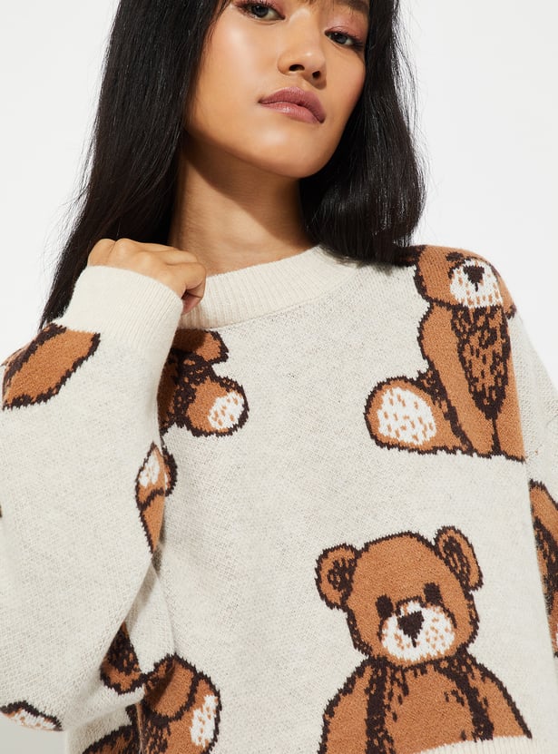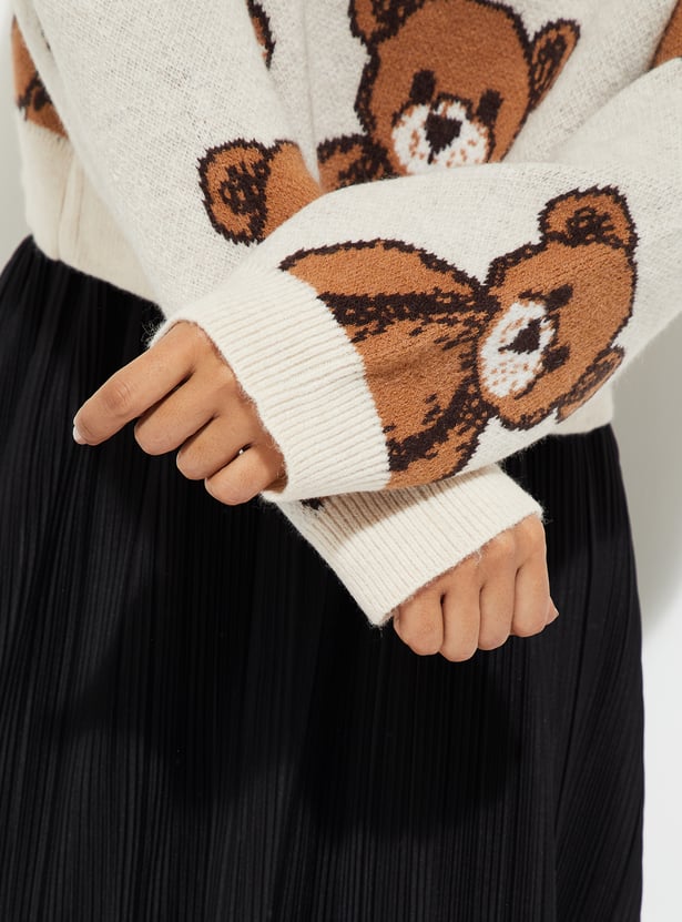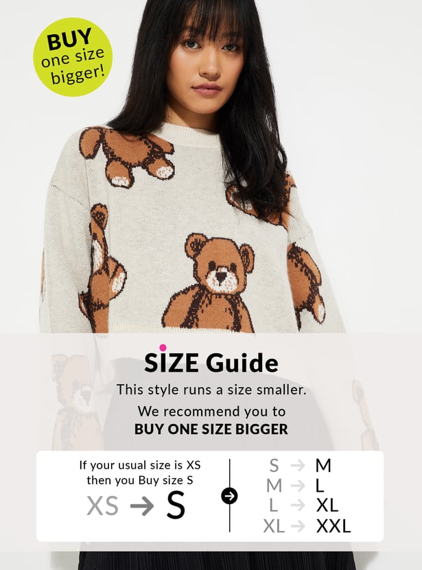 Add a touch of charm to your winter wardrobe with this knit sweater, featuring a crew neck, full sleeves, and an adorable teddy knit design. Soft and cozy, it brings playful warmth to your everyday style.