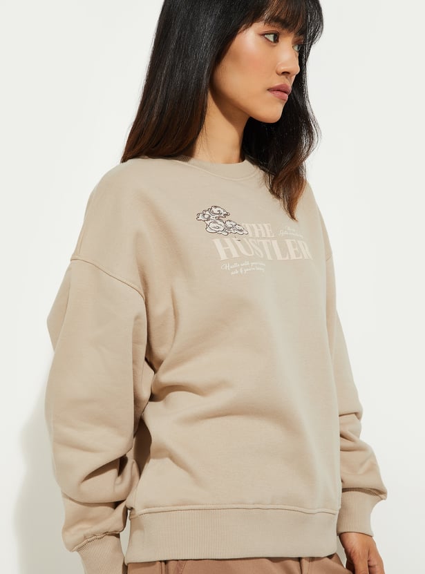 URB_N Women Printed Oversized Sweatshirt