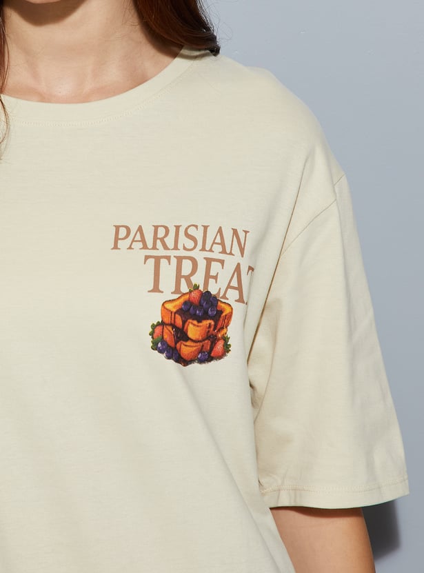 Elevate your casual style with this printed oversized T-shirt. Featuring a round neck and half sleeves, it combines comfort with a bold, eye-catching print.