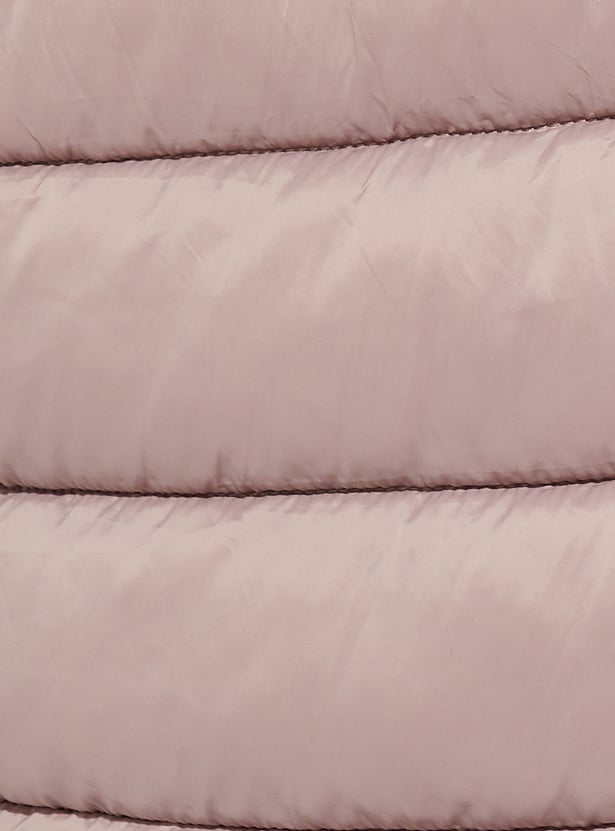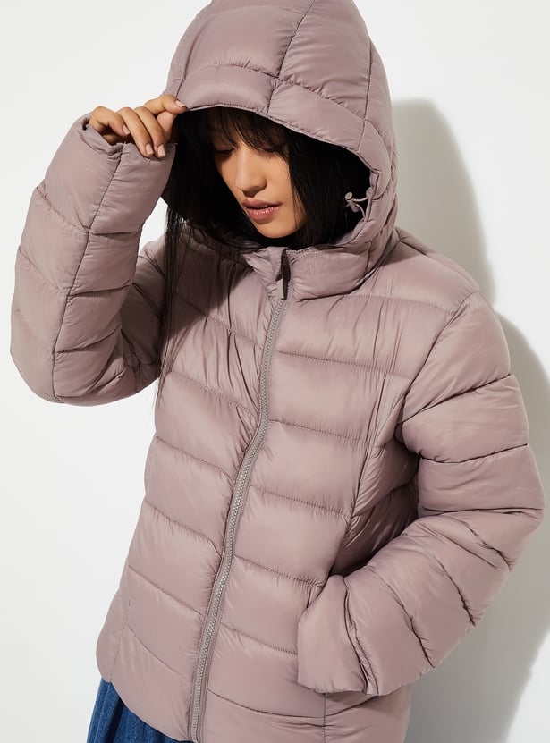 Stay warm and stylish with this quilted hooded jacket, featuring full sleeves, a zip closure, and side pockets for added convenience. Its quilted design offers both comfort and a trendy, casual look.