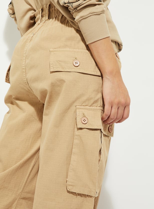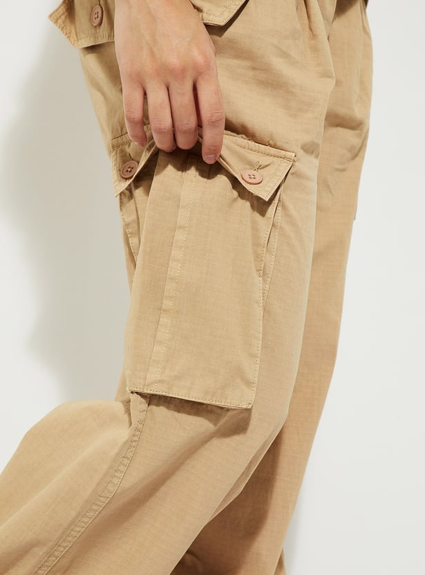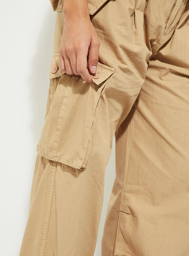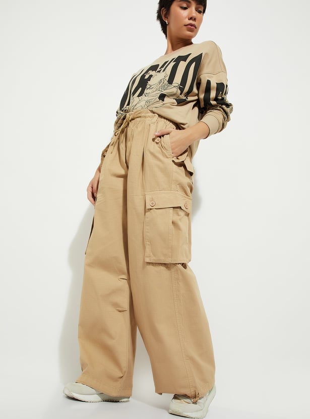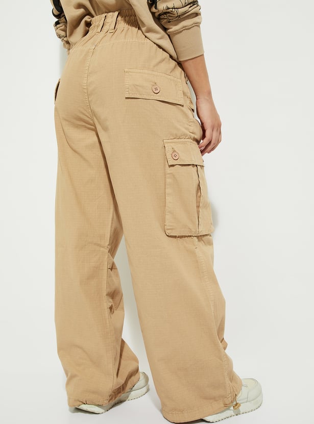 URB_N Women Solid Parachute Pants with Cargo Pockets