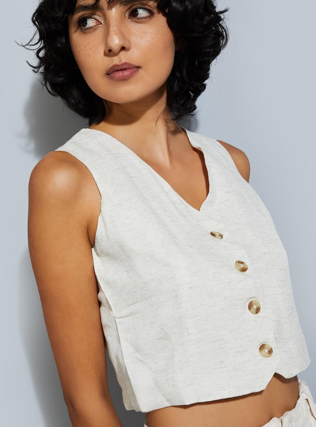 Revamp your urban style with this sleeveless solid vest top. Featuring a V-neck, front button placket, and asymmetrical hem, it's the perfect piece to elevate your semi-formal look. With its urban flair, it adds a stylish touch to any outfit.
