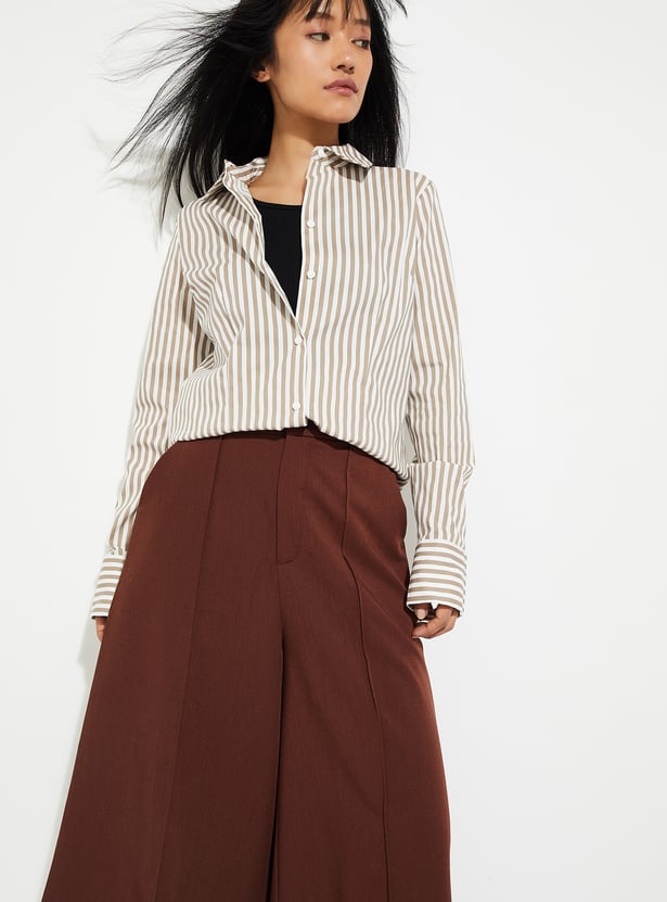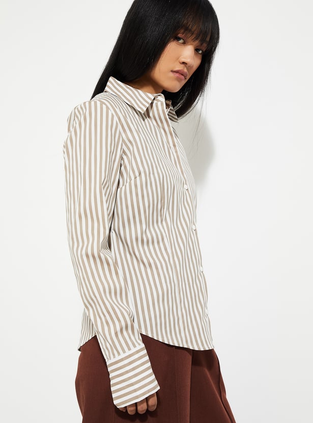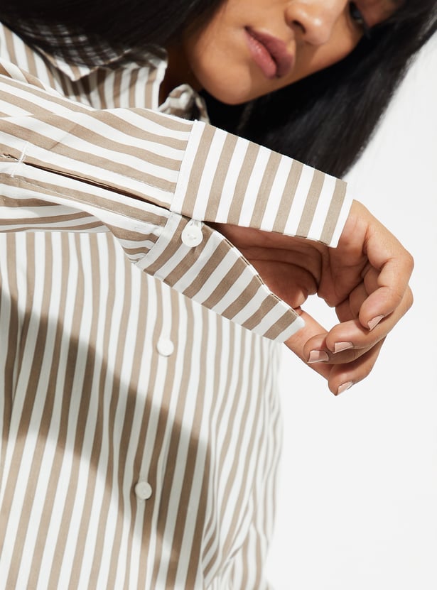 This regular-fit striped shirt features a classic collar and cuffed, full sleeves for a polished yet relaxed look. With its button-down closure, it’s perfect for effortless everyday style.