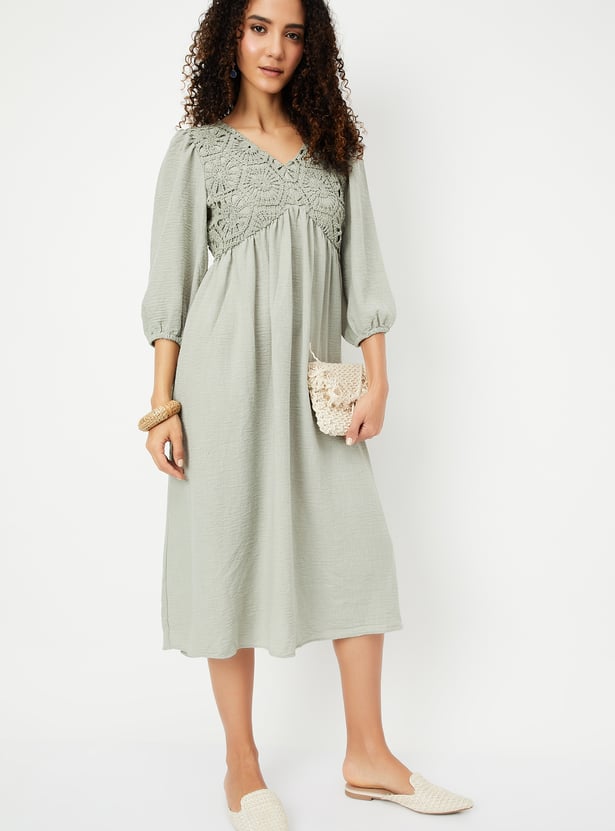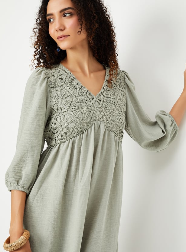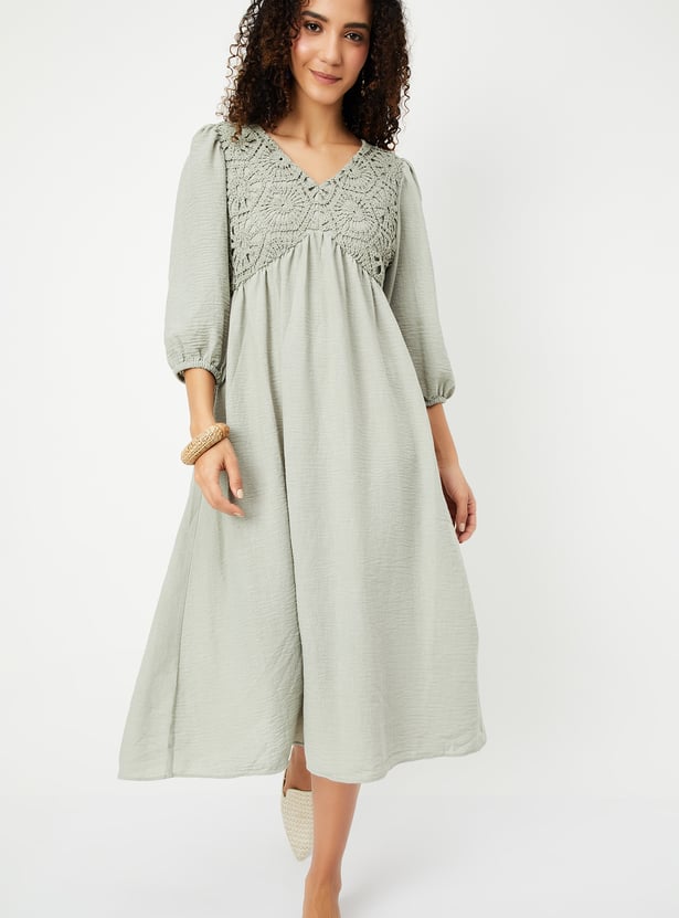 Women A-line Dress with Crochet Yoke