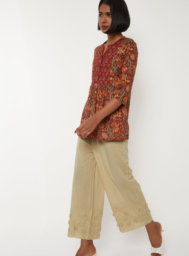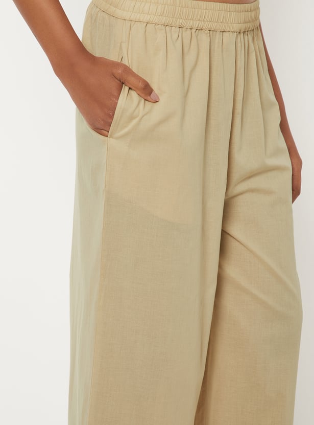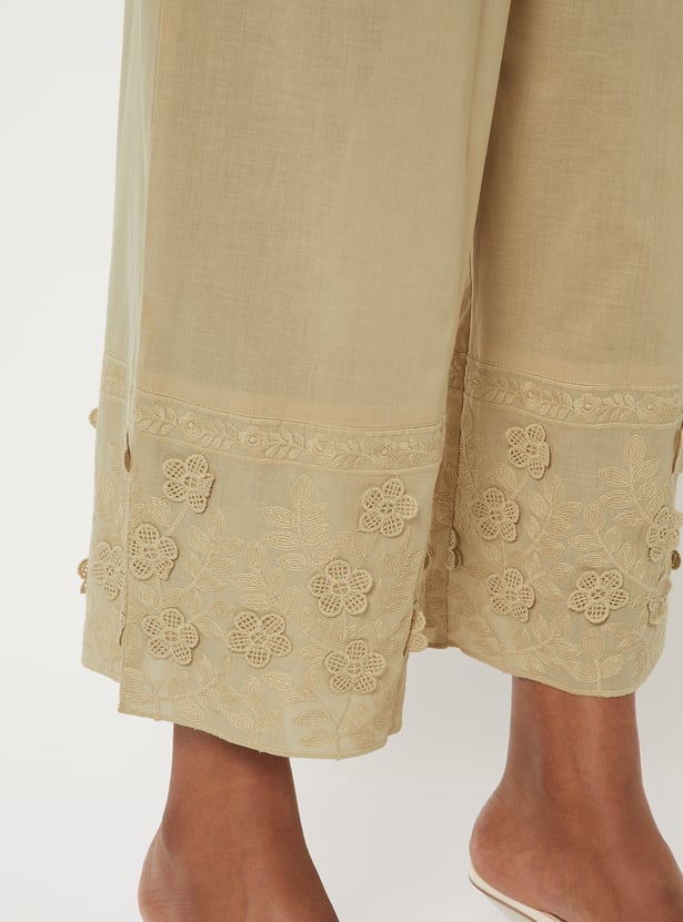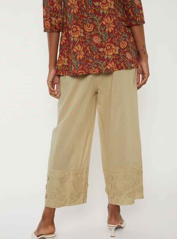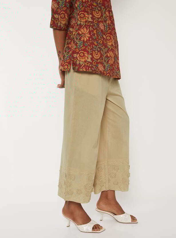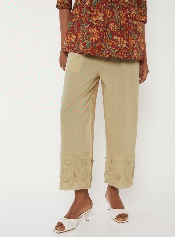 Effortless and chic, these applique hem palazzos feature an elasticated waist for comfort and handy pockets for everyday ease. The applique detailing at the hem adds a touch of subtle elegance.