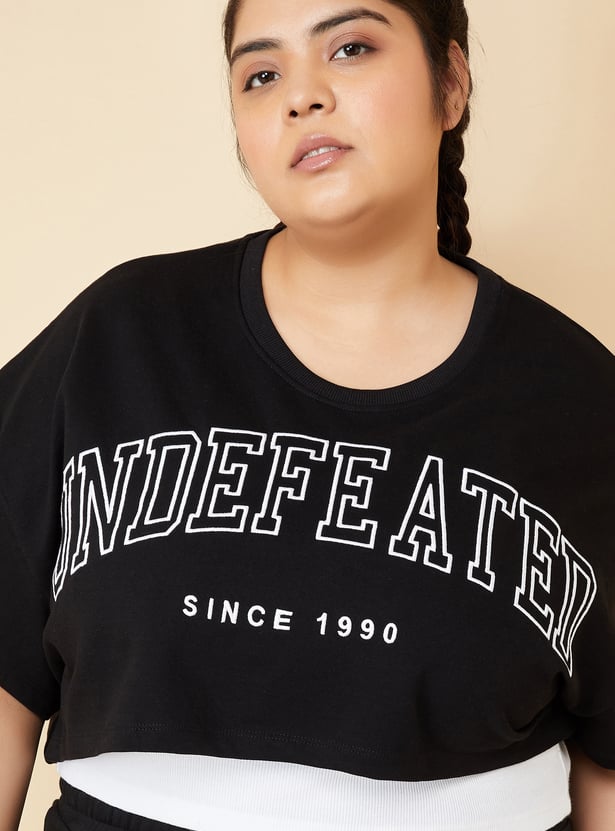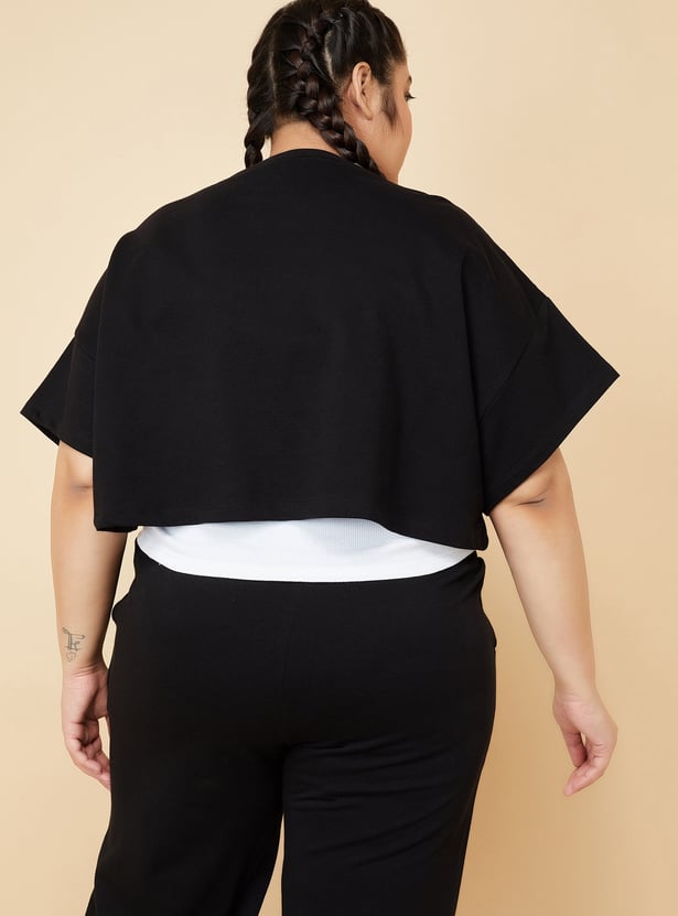 Flaunt your street-style look with this boxy fit crop t-shirt and camisole, blending comfort and style. The relaxed, cropped fit with half sleeves and a round neck ensures breathability and ease. Perfect for workouts, casual outings, or lounging. Model Size :