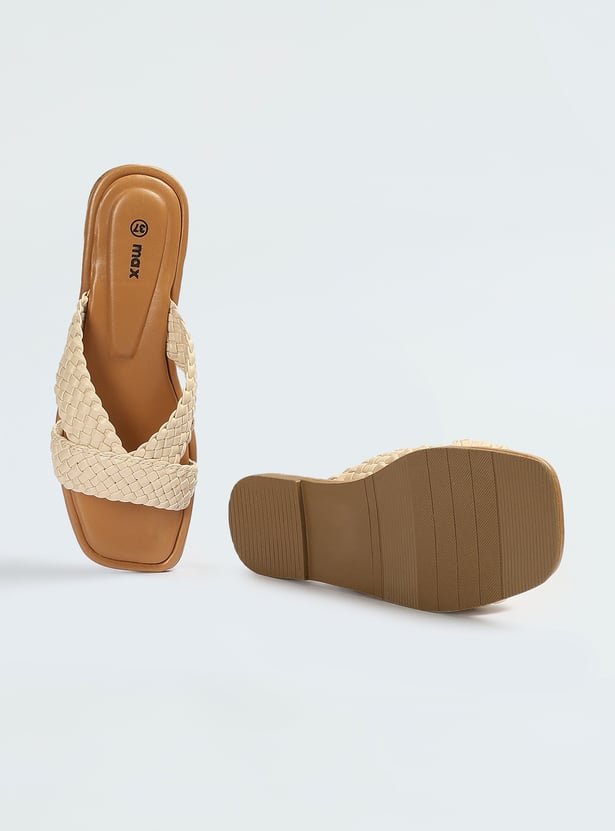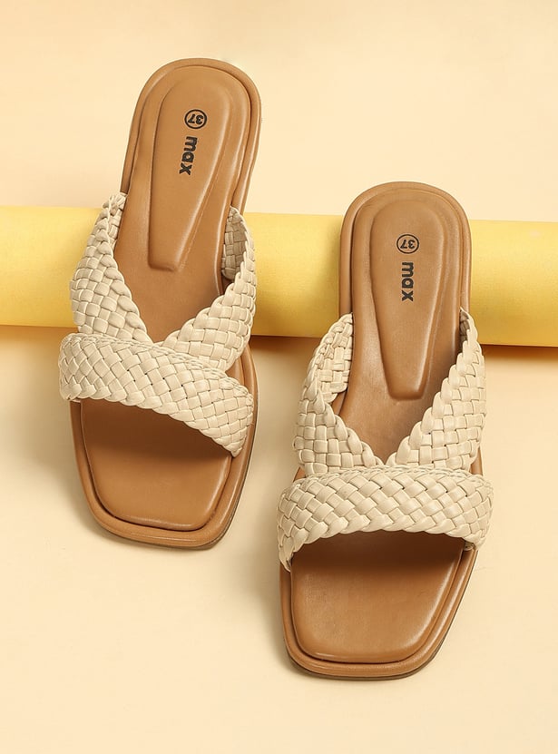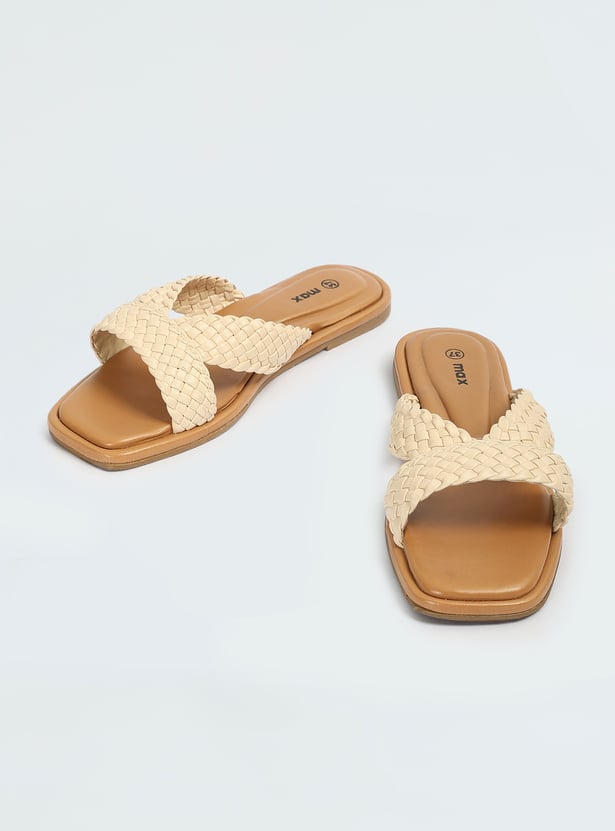 Step into comfort and style with these braided strap flats. Featuring a sleek square open toe and slip-on design, they offer an effortless and chic way to elevate your everyday look.
