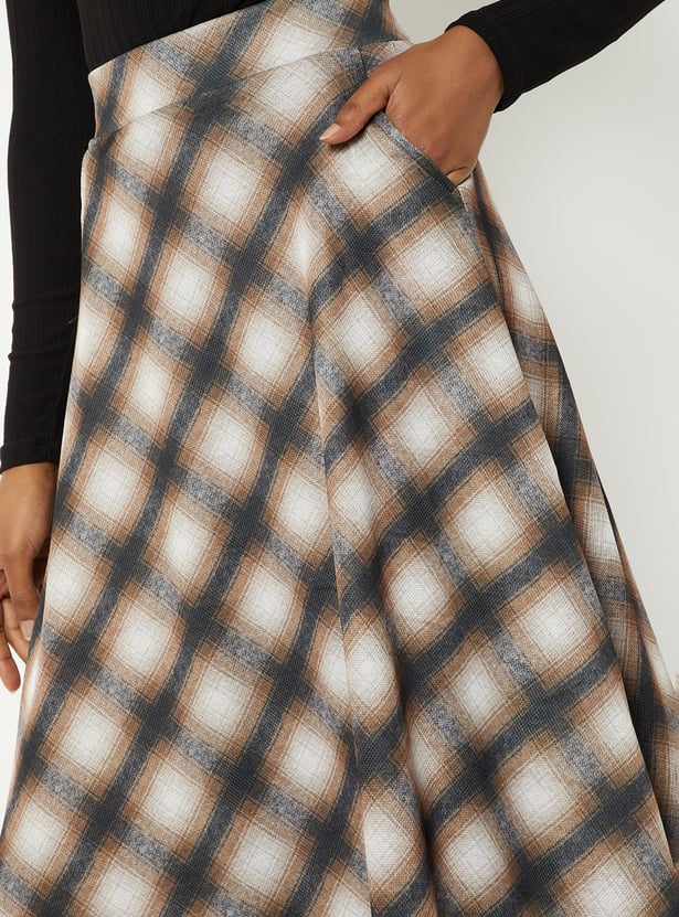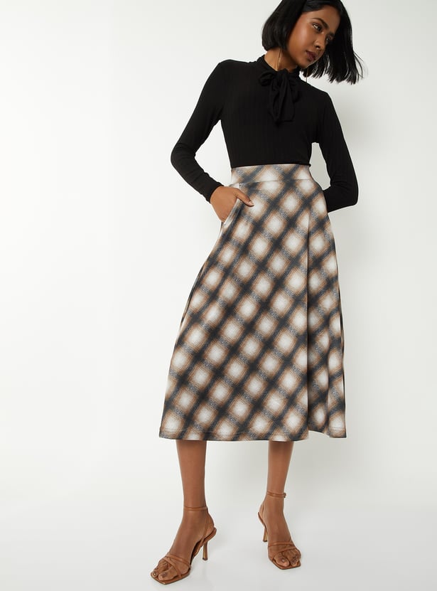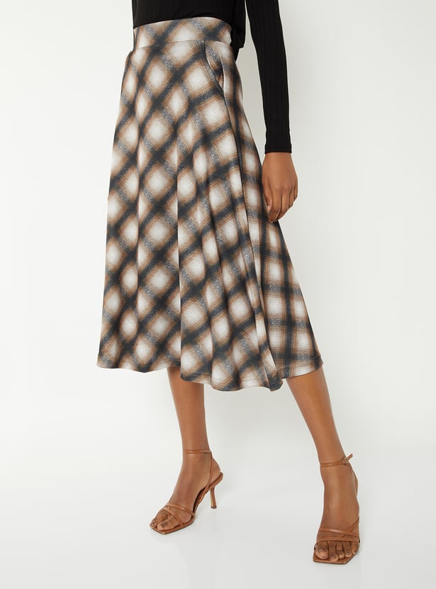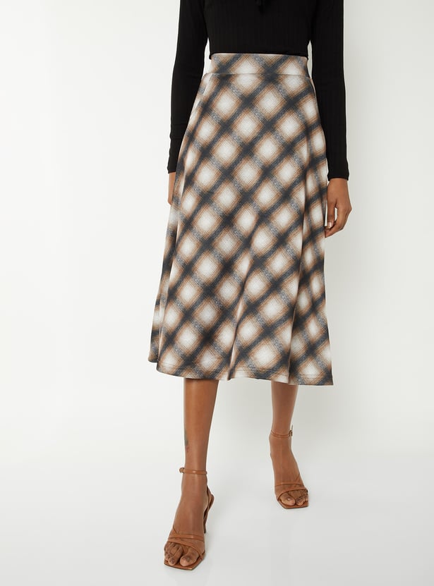 Women Checked A-line Midi Skirt