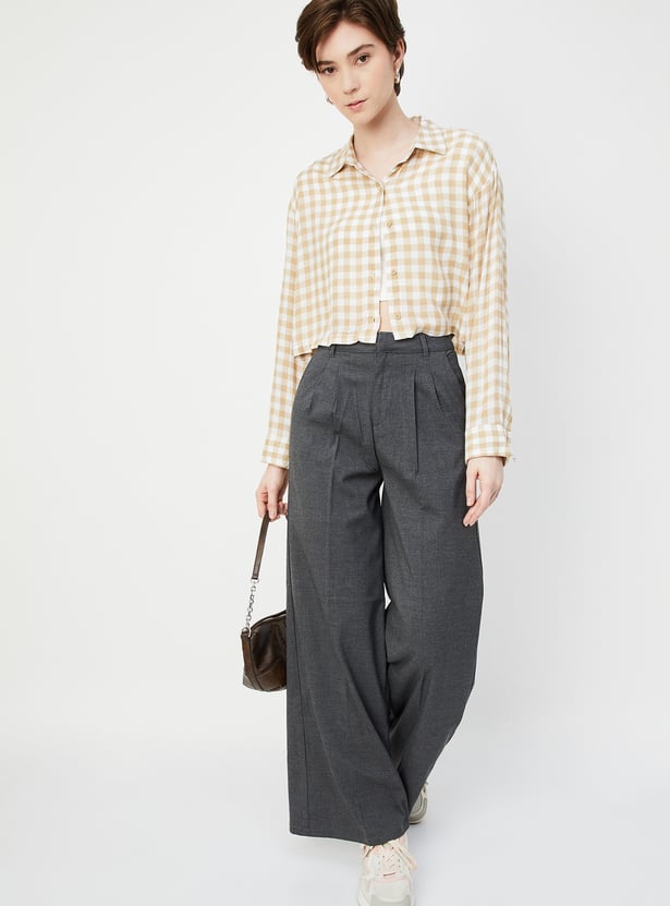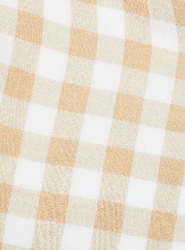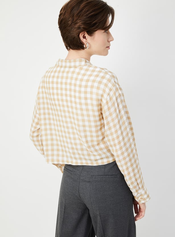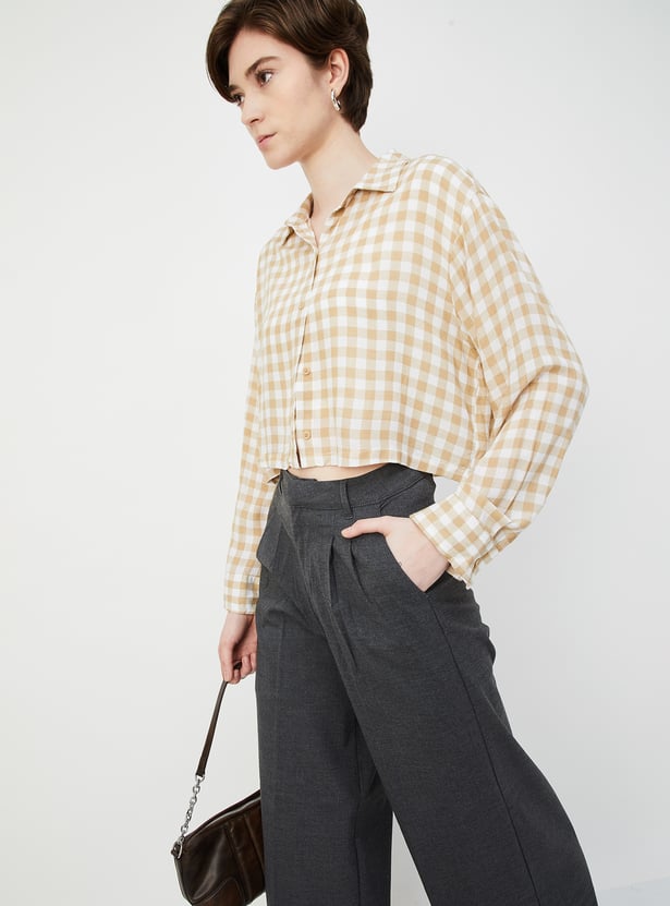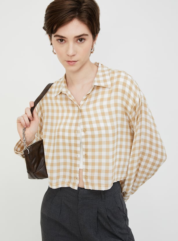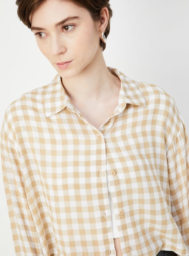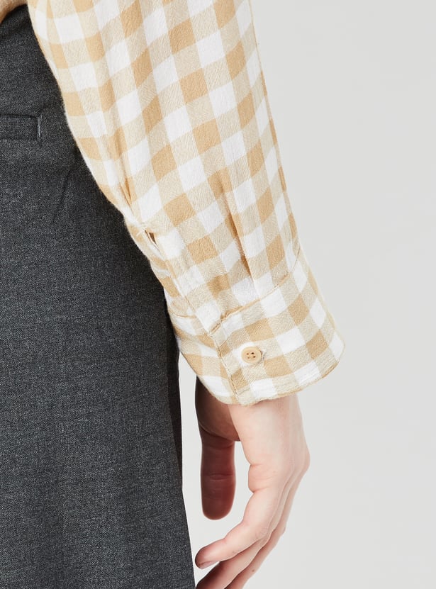 Step up your style game with this checked boxy shirt, a must-have for the ultimate laid-back, trendy look. Featuring a button placket, spread collar, and button cuffs, this shirt offers the perfect mix of classic and cool. Model Size :