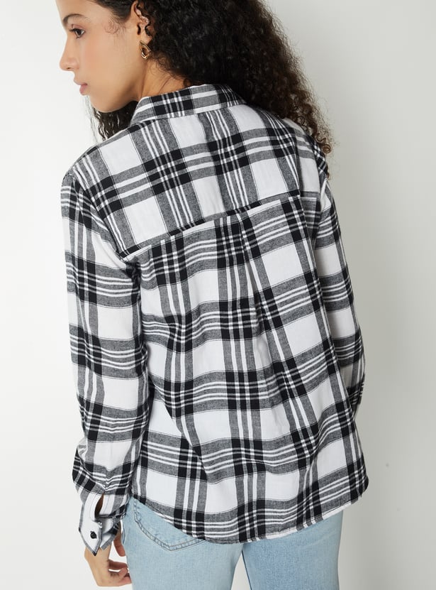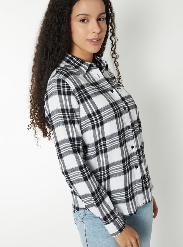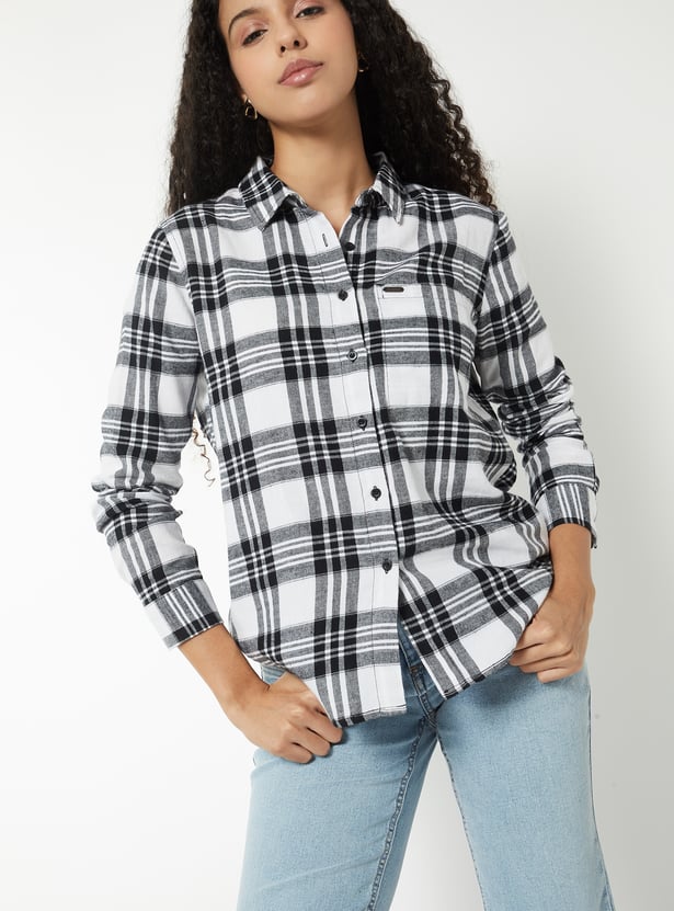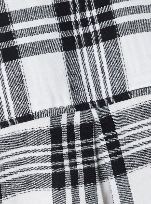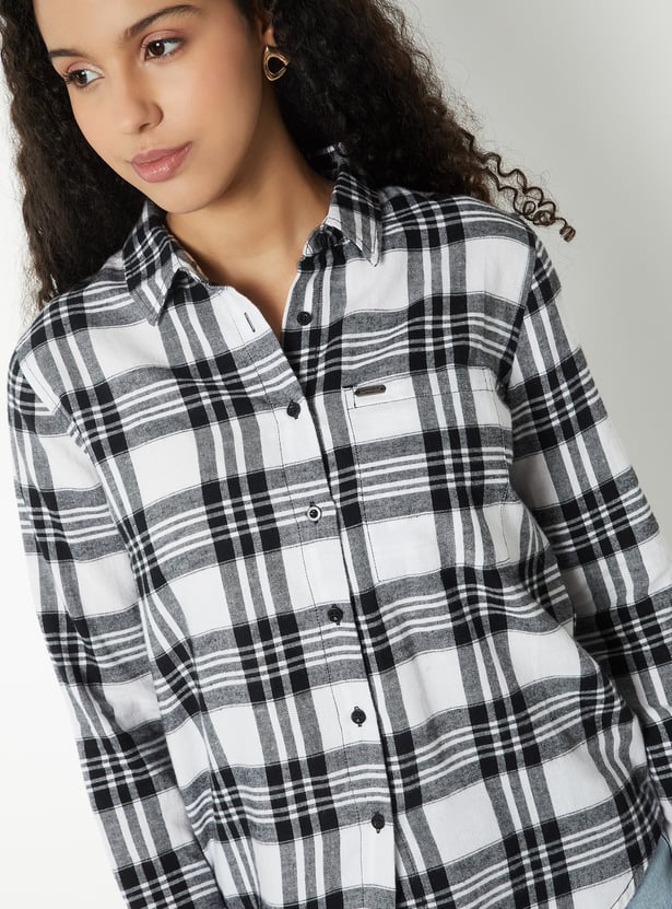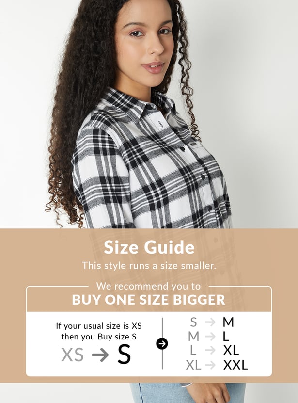 Update your casual staples with this checked oversized shirt featuring a crisp spread collar, a classic button placket, and full sleeves finished with button cuffs. Designed for a relaxed, easygoing fit, it’s perfect for versatile layering.